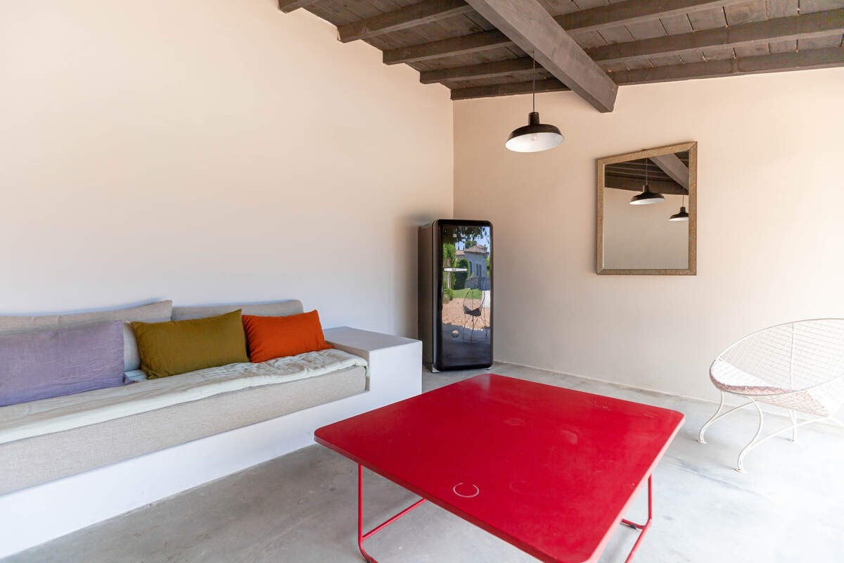 Deux chambres sont indépendantes de la maison principale et nécessitent de passer par l’extérieur pour rejoindre les pièces à vivre.