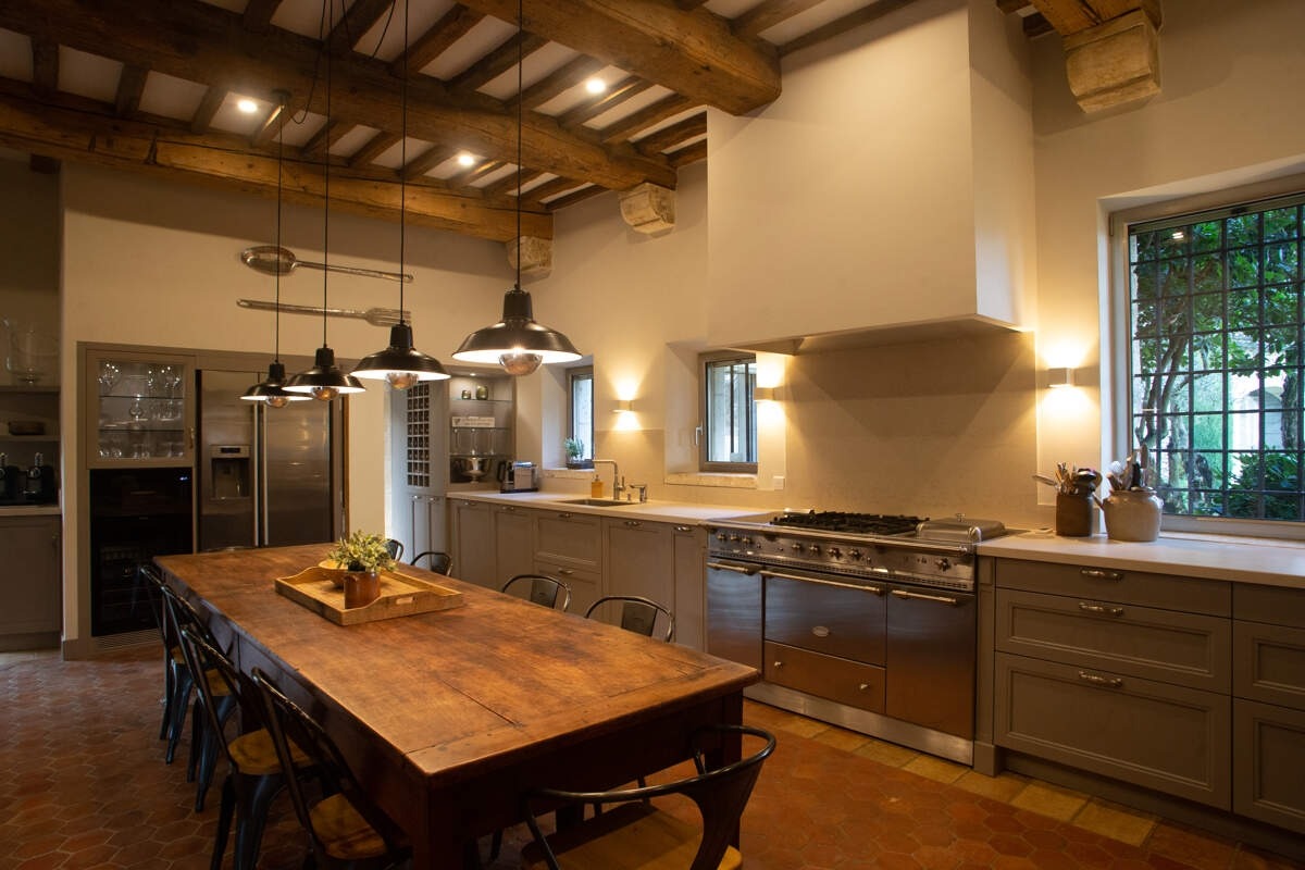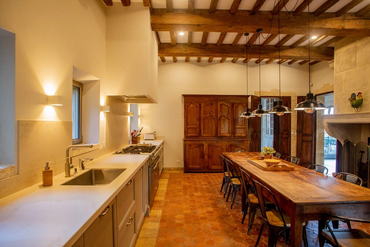 La maison est agencée avec 6 chambres dans le bâtiment principal et 5 chambres dans une dépendance uniquement accessible par l’extérieur.