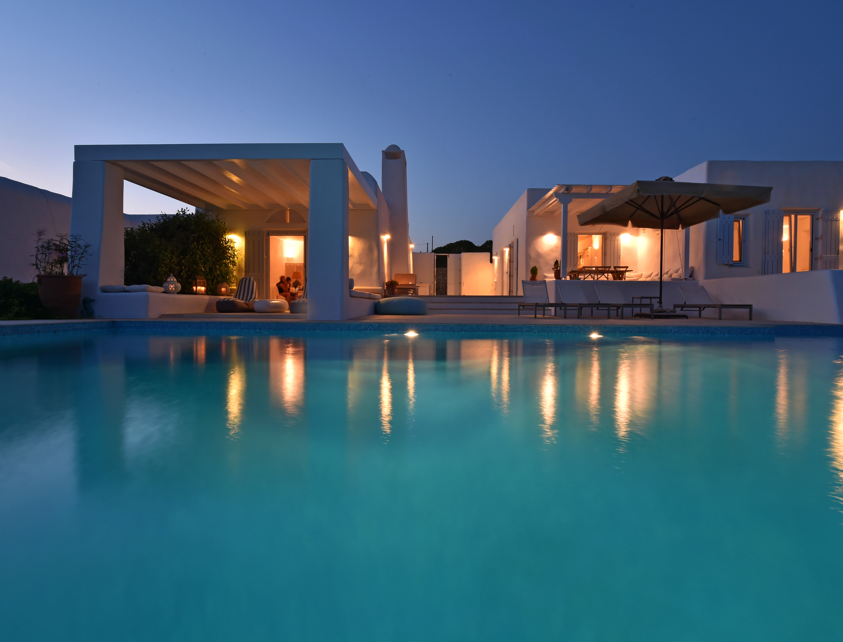 La plage la plus proche est a 2 min de marche. Village d'Aliki à 1 km. Aéroport : 3 km. Ville de Paroikia : 10 km. La grande piscine bleue remplie d'eau de mer et les terrasses et salons donnant sur l'eau créent un jeu infini entre les couleurs de la mer Égée qui dominent tous les points de vue. Un système d'éclairage extérieur soigneusement sélectionné crée une ambiance rare dans la villa la nuit. L'atmosphère parfaite pour profiter d'un dîner privé avec vos proches !
