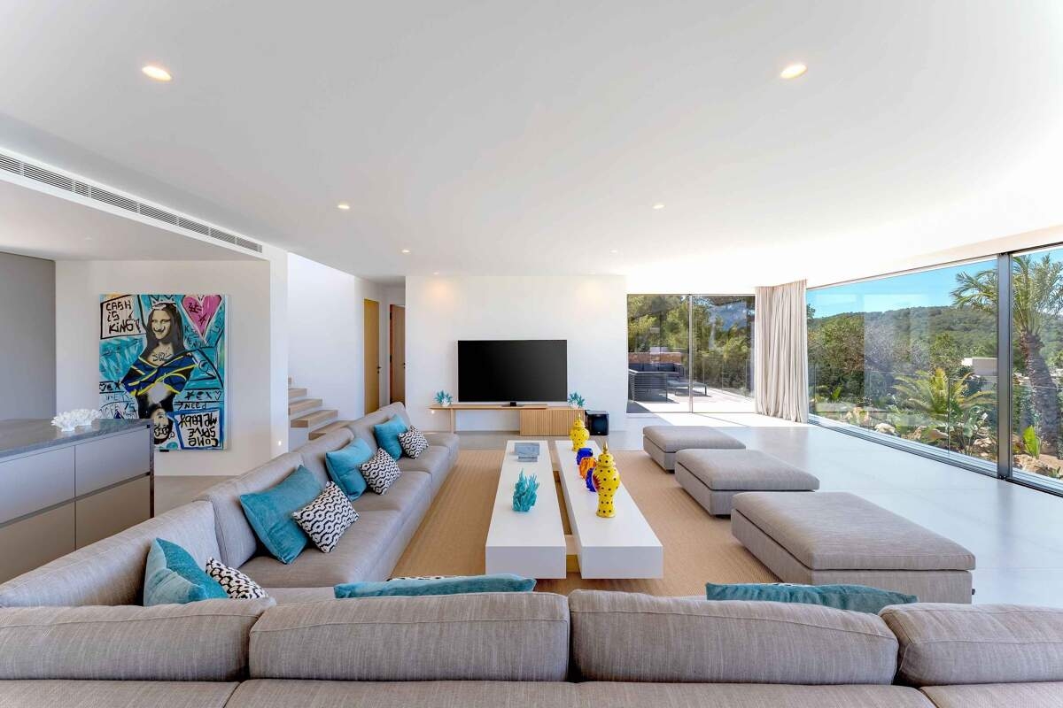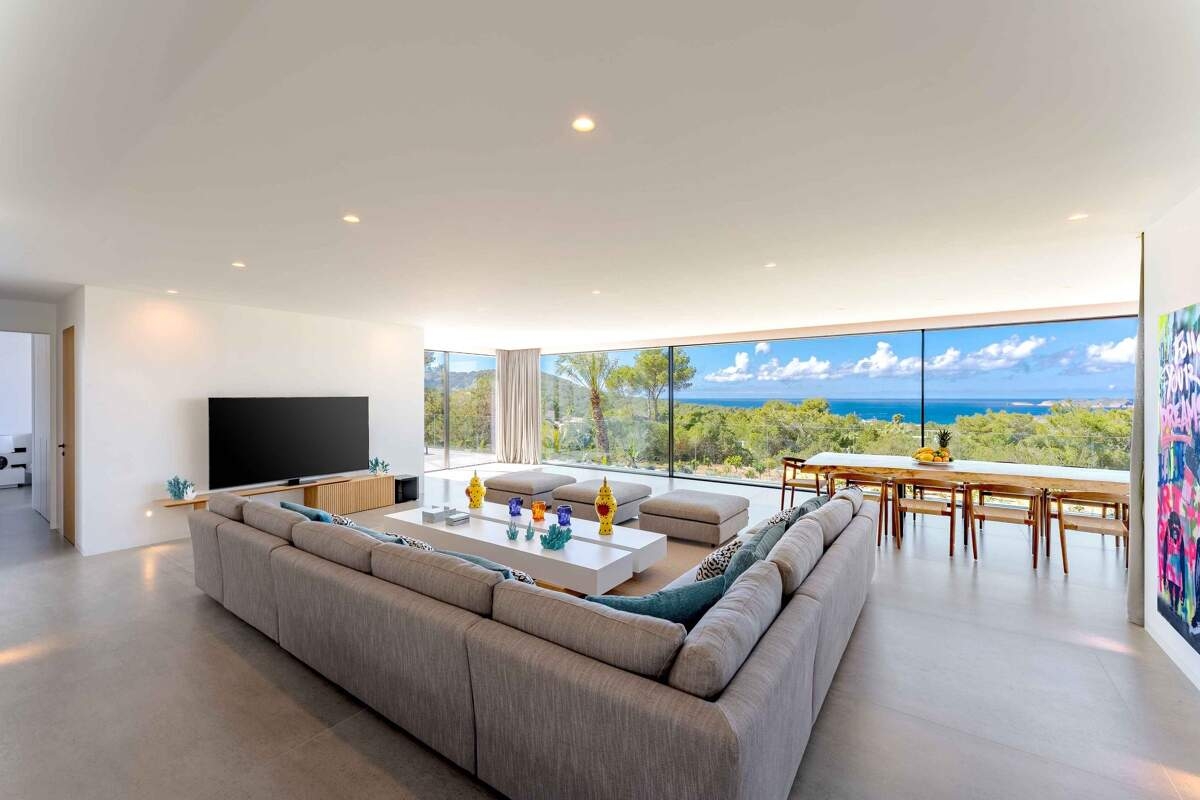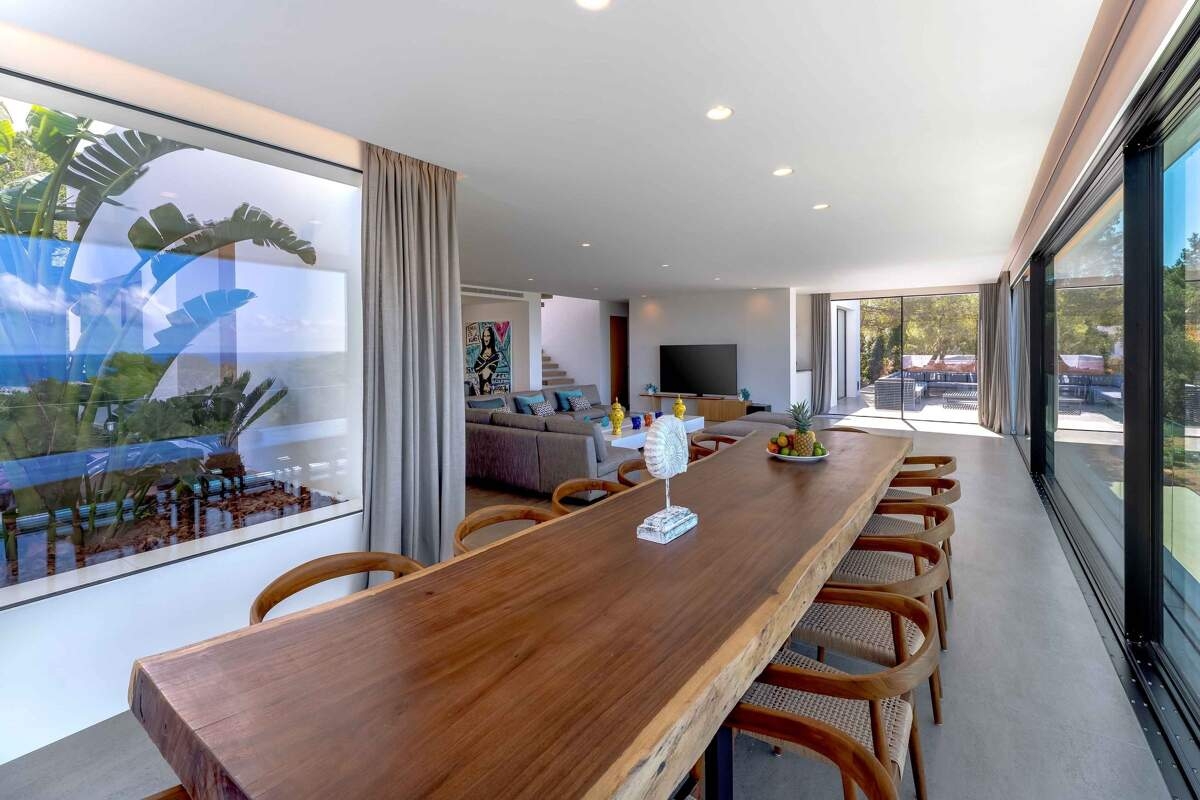 Perché au-dessus de Cala Tarida, sur la côte ouest d'Ibiza, Can Miralou est un refuge design offrant des places au premier rang pour assister au spectacle le plus captivant de l'île : le coucher de soleil sur la mer. Entièrement rénovée en 2025, la villa est baignée de lumière naturelle et orientée de manière à offrir une vue panoramique sur la mer sous tous les angles.