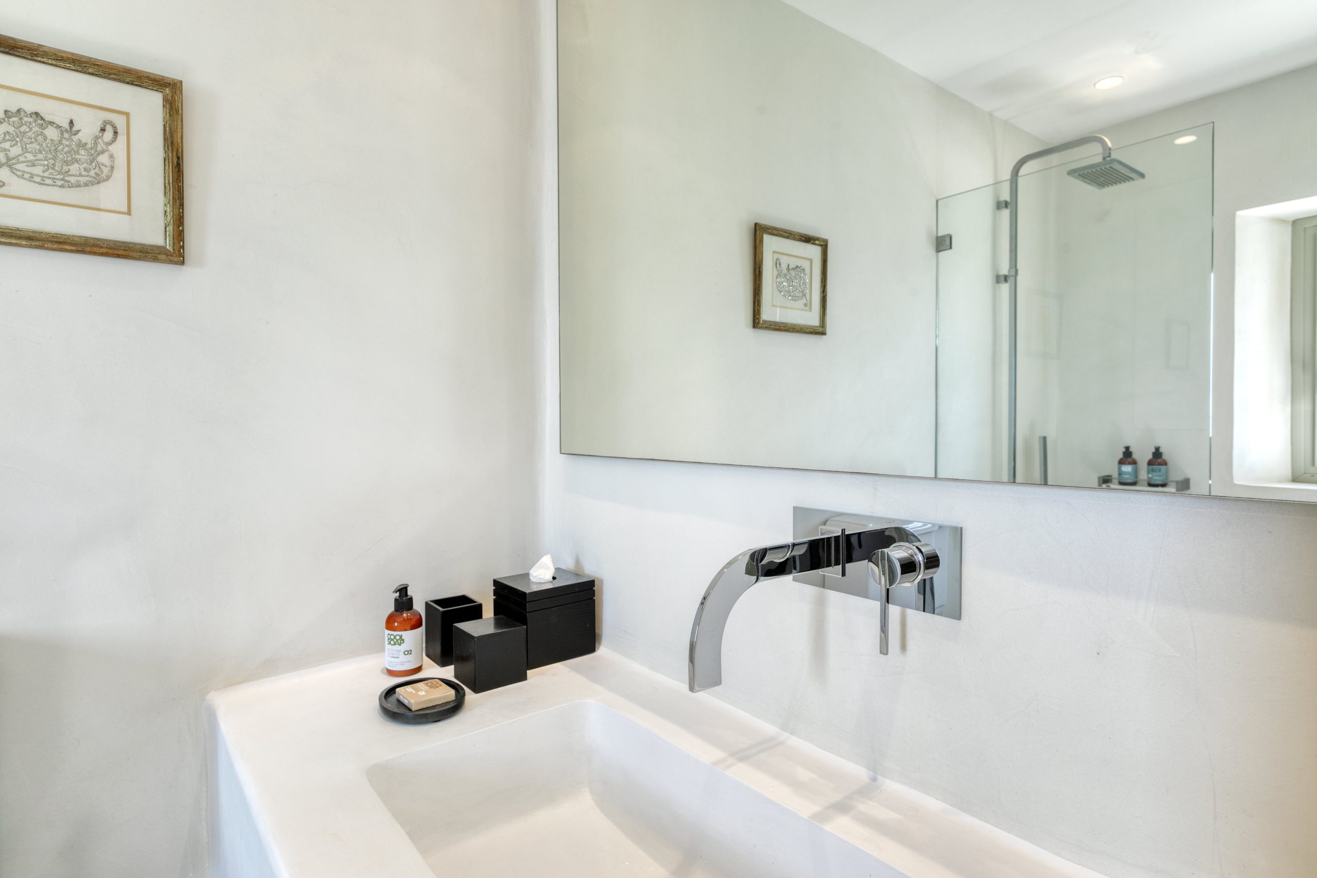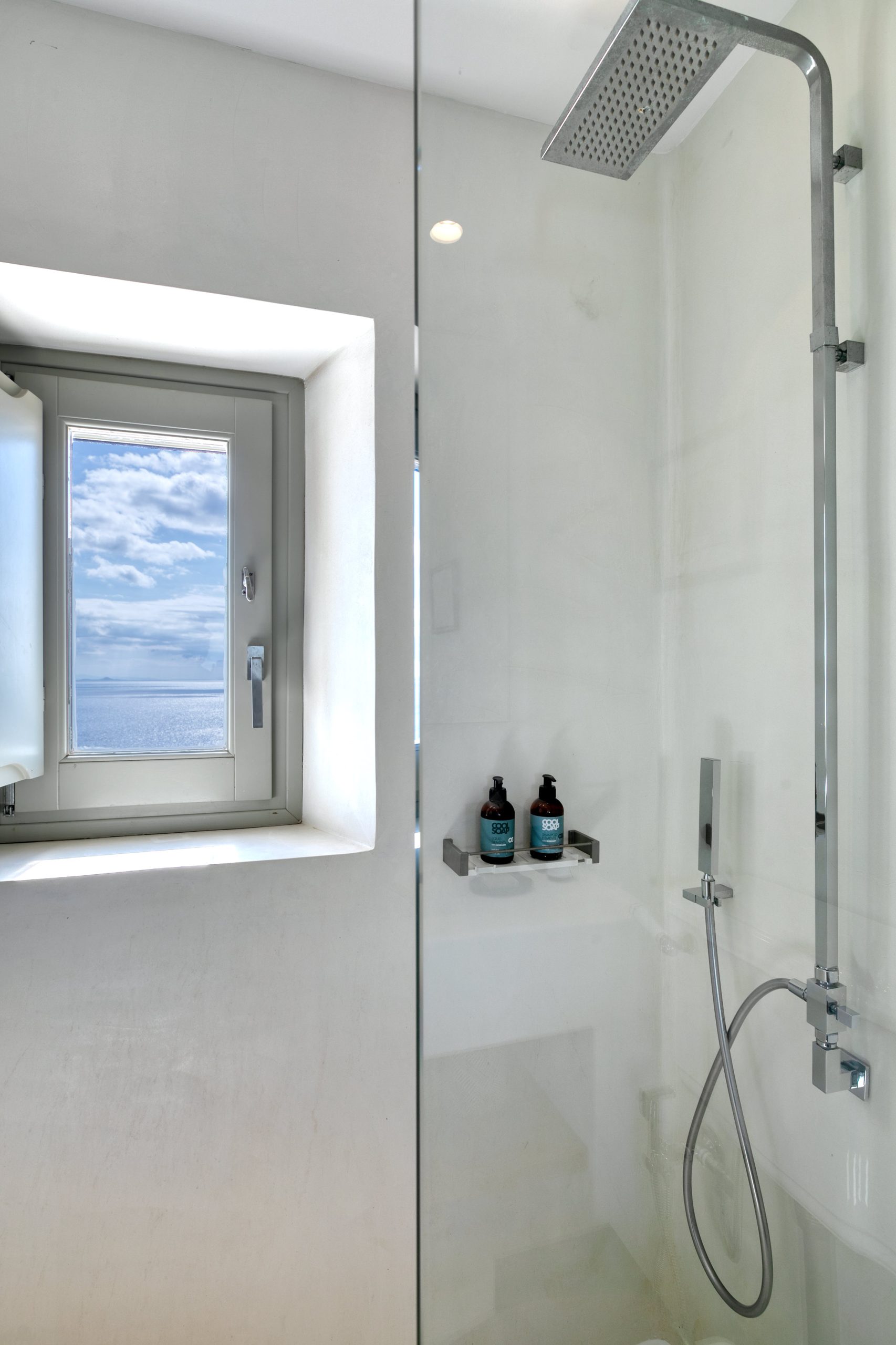 – Chambre 4 – Suite 3 : lit king size, salle de bain attenante avec douche indépendante, vue sur la mer.