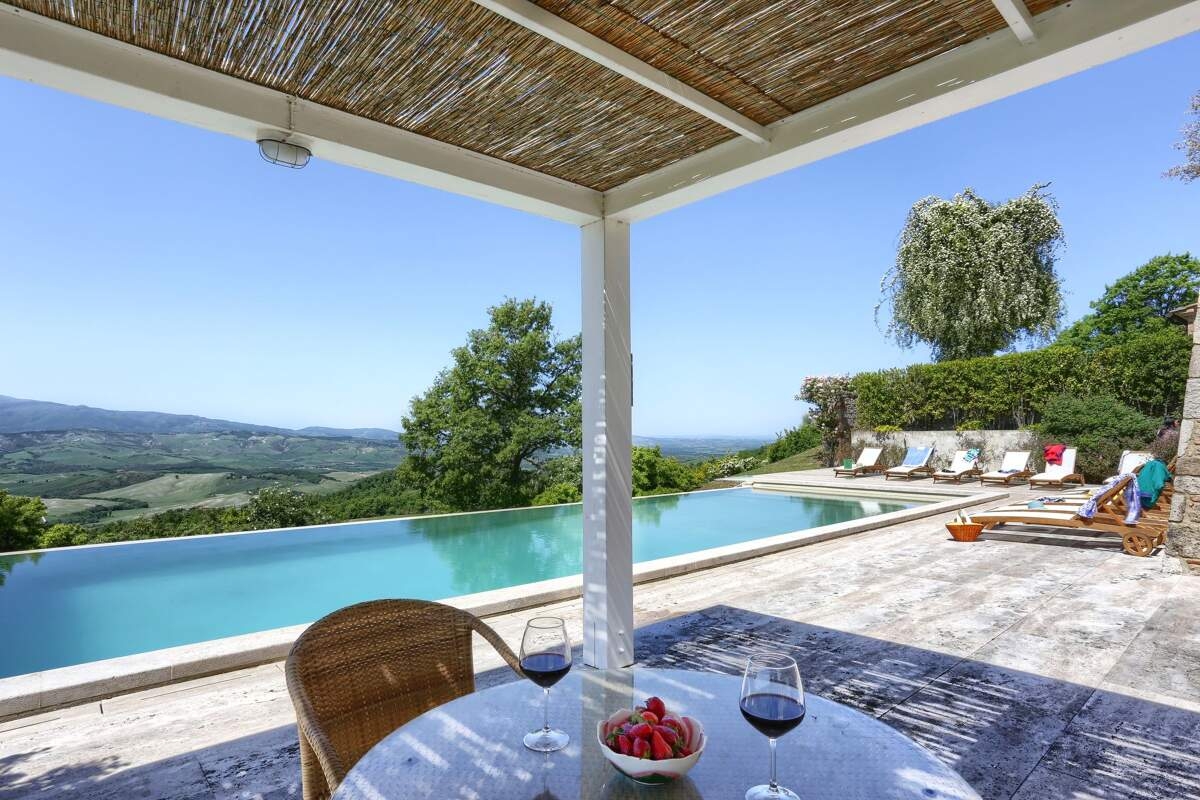 Commencez votre journée par une séance d'entraînement dans la salle de fitness avant de vous rafraîchir dans la magnifique piscine à débordement, qui offre une vue imprenable sur les collines du Val d'Orcia. Entouré par la nature, passez vos journées en plein air à profiter du jardin et du parfum frais des plantes toscanes. Savourez vos repas en plein air sous la pergola ombragée, puis installez-vous dans une chaise longue au bord de la piscine pour vous plonger dans votre livre de vacances préféré. À la tombée de la nuit, admirez le soleil se coucher derrière les collines, peignant l'horizon de nuances époustouflantes de rouge, rose, orange et violet.