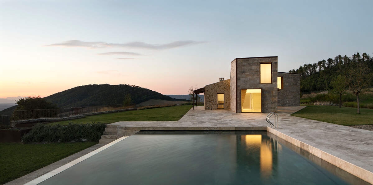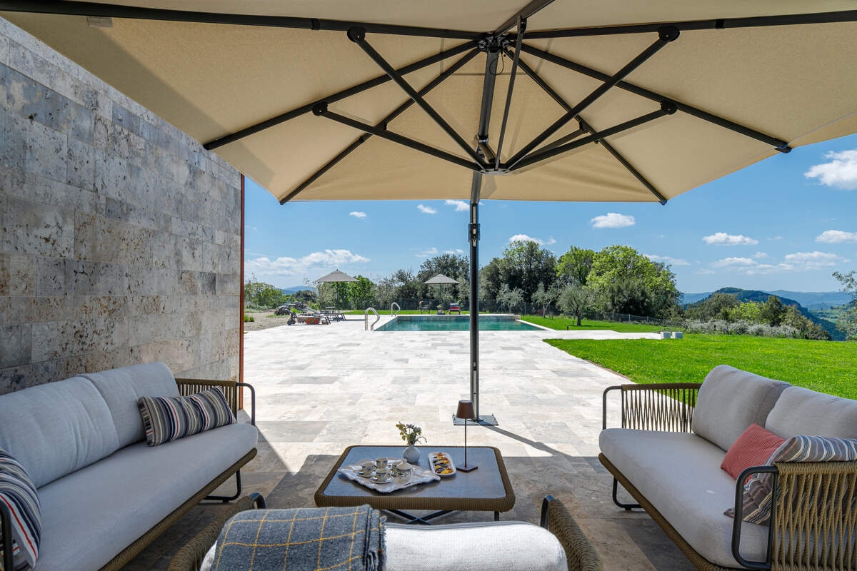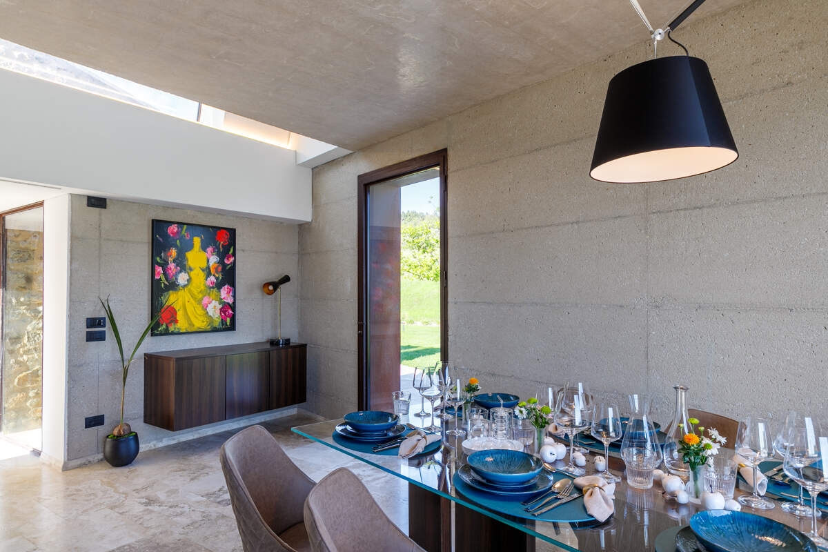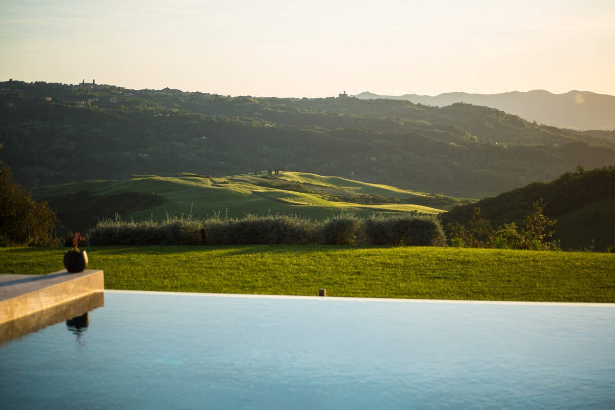 La Villa Idillio est une villa au design unique située près de Volterra, offrant une vue imprenable à 360 degrés sur la campagne toscane. Alliant une architecture traditionnelle en pierre à des extensions modernes, cette villa restaurée offre un intérieur spacieux et lumineux. Avec sa piscine à débordement, ses terrasses pour les repas et la détente, et ses équipements haut de gamme, elle garantit un séjour confortable. Entourée d'un domaine bien entretenu, comprenant un jardin pittoresque, c'est un refuge idéal pour profiter de la beauté de la Toscane.