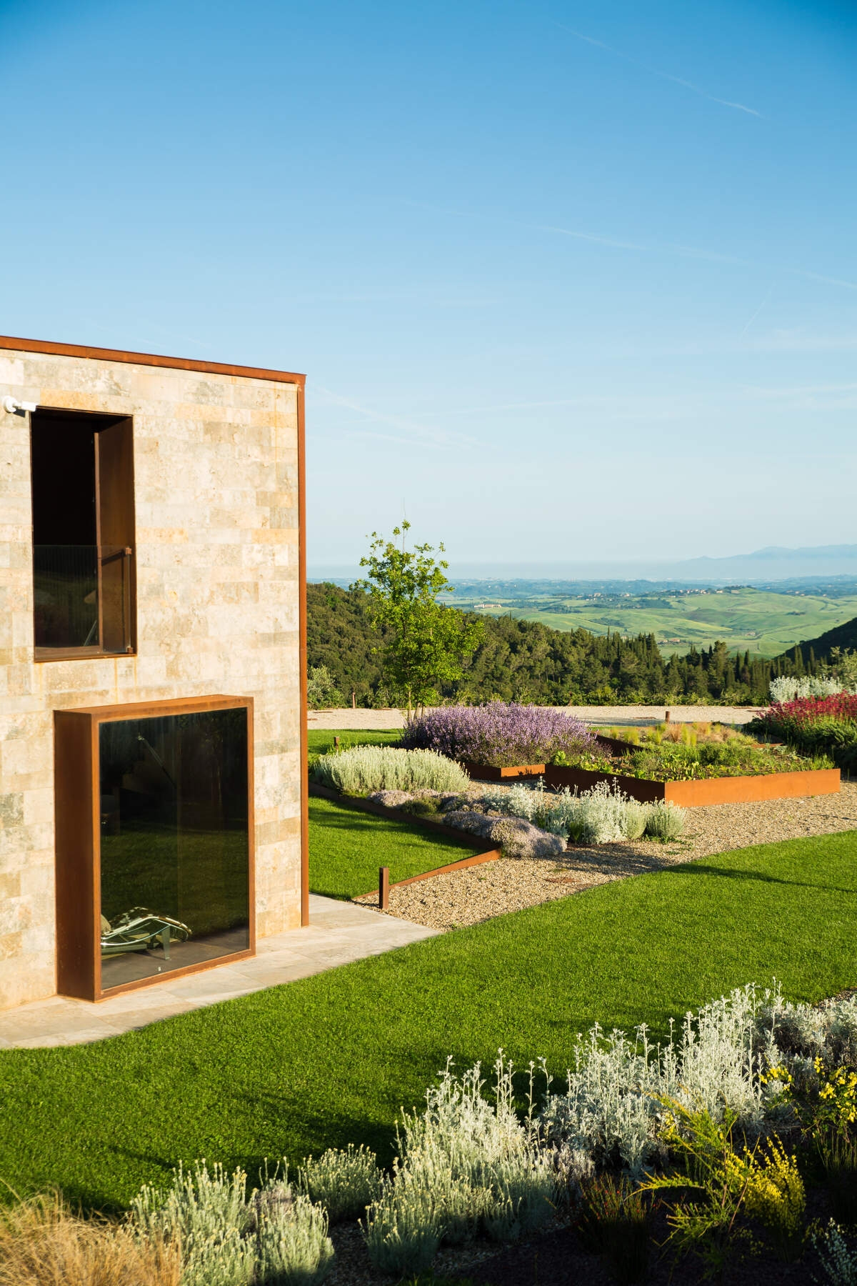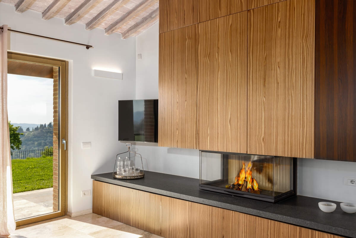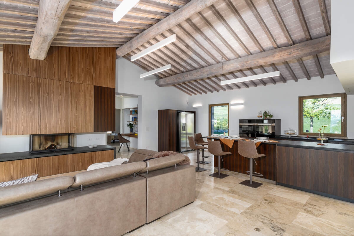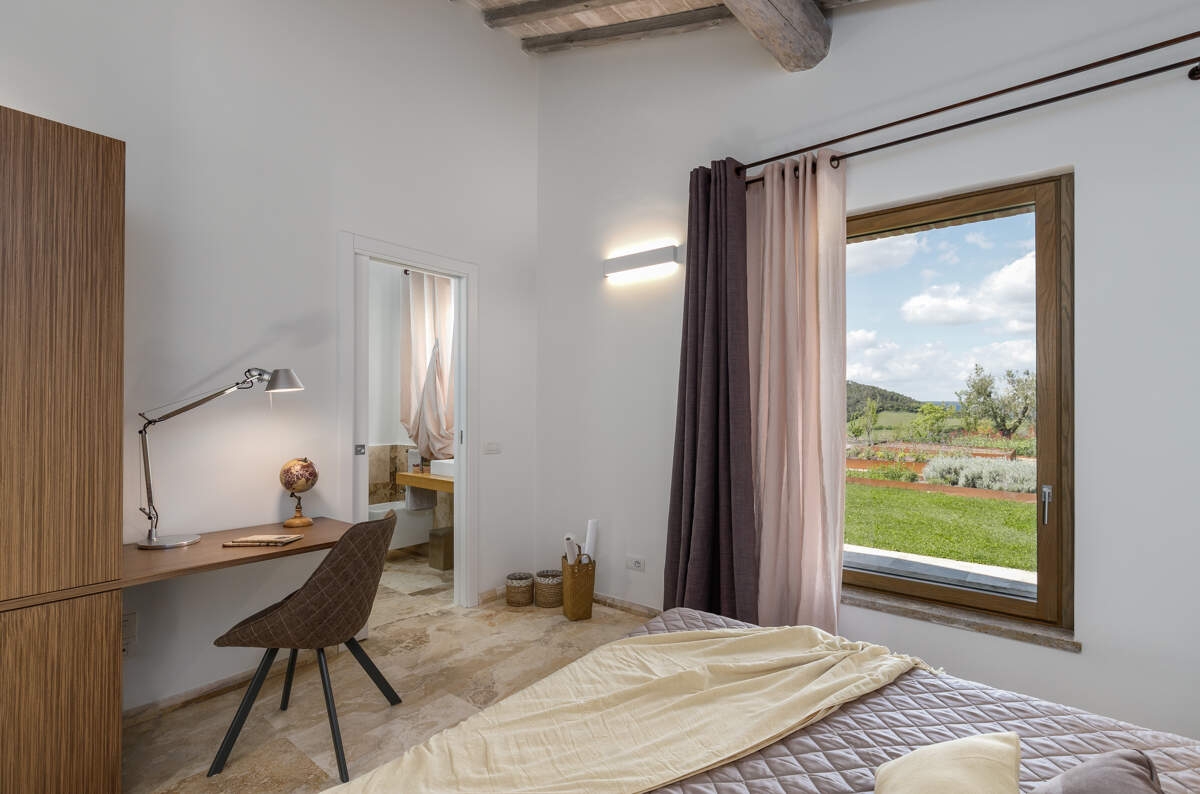 La Villa Idillio est une villa au design unique située près de Volterra, offrant une vue imprenable à 360 degrés sur la campagne toscane. Alliant une architecture traditionnelle en pierre à des extensions modernes, cette villa restaurée offre un intérieur spacieux et lumineux. Avec sa piscine à débordement, ses terrasses pour les repas et la détente, et ses équipements haut de gamme, elle garantit un séjour confortable. Entourée d'un domaine bien entretenu, comprenant un jardin pittoresque, c'est un refuge idéal pour profiter de la beauté de la Toscane.