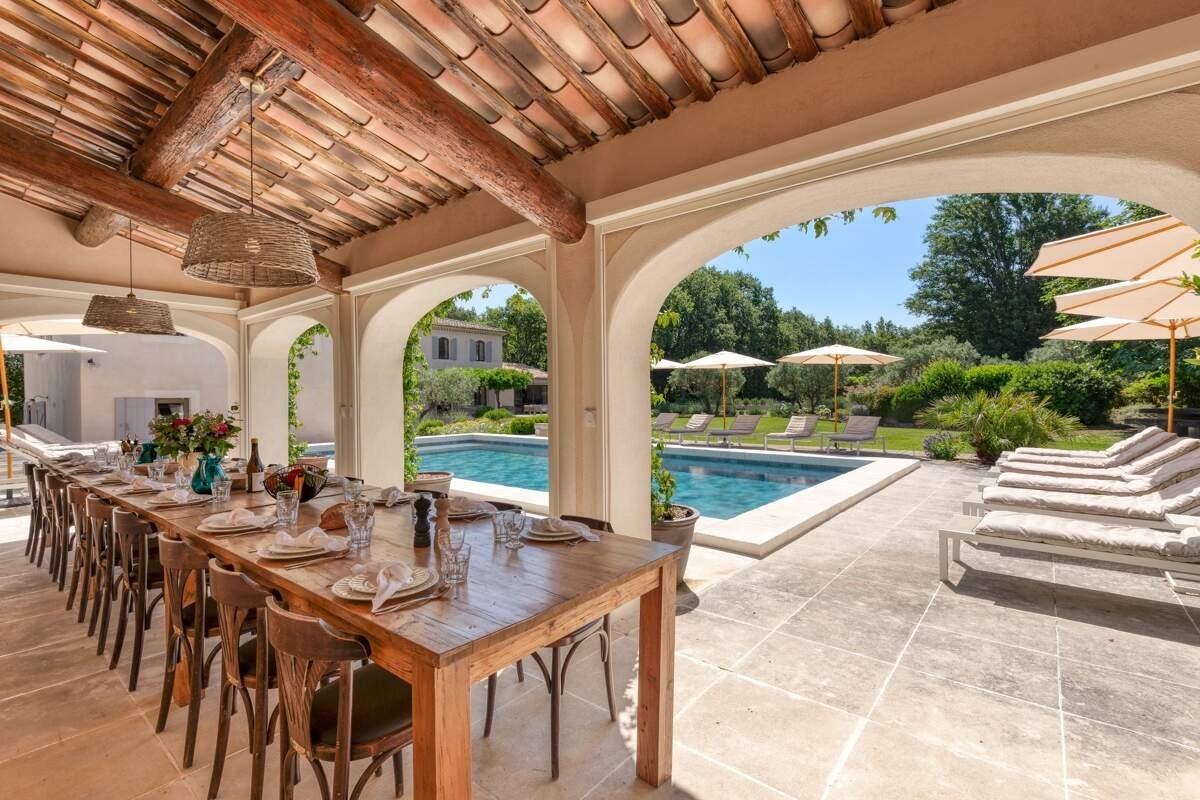 Nestling in Ménerbes, in the heart of the Luberon, Bastide de l'Arche combines the elegance of Provencal charm with the modernity of contemporary design. Located just 15 minutes' walk from the village, the bastide blends perfectly into its peaceful setting, surrounded by breathtaking scenery.