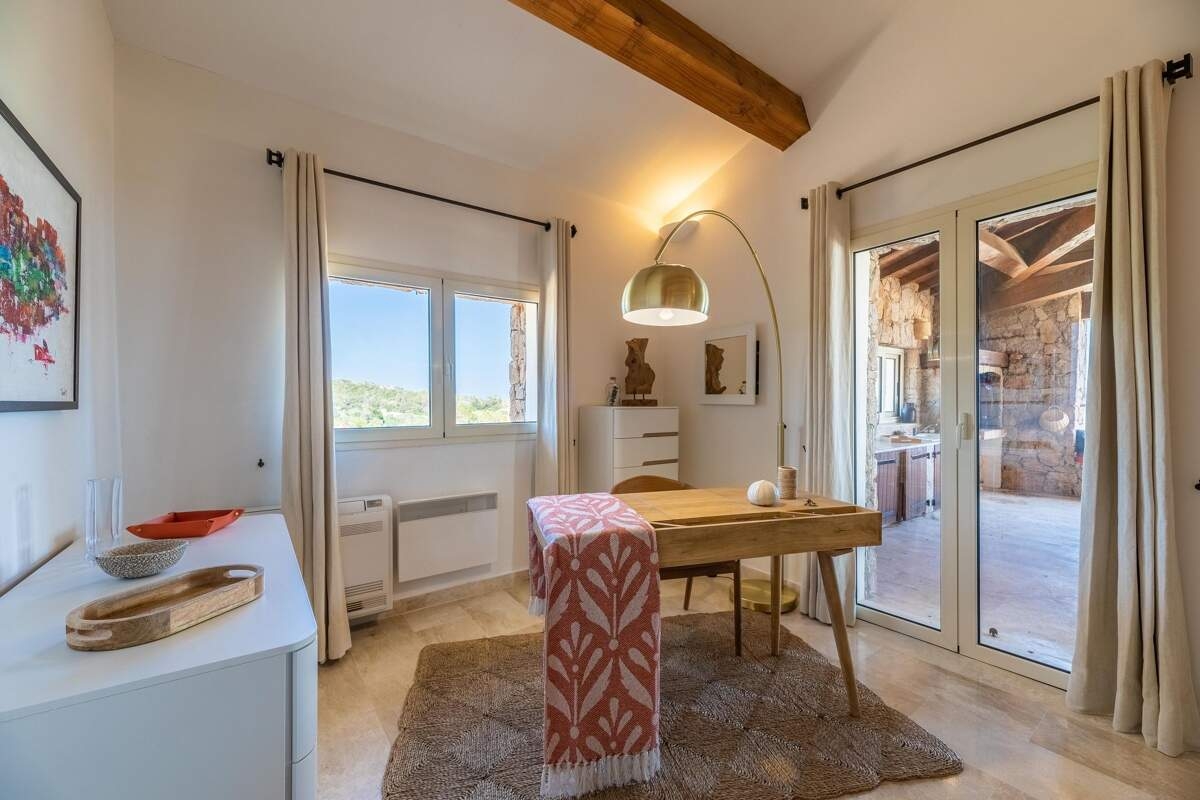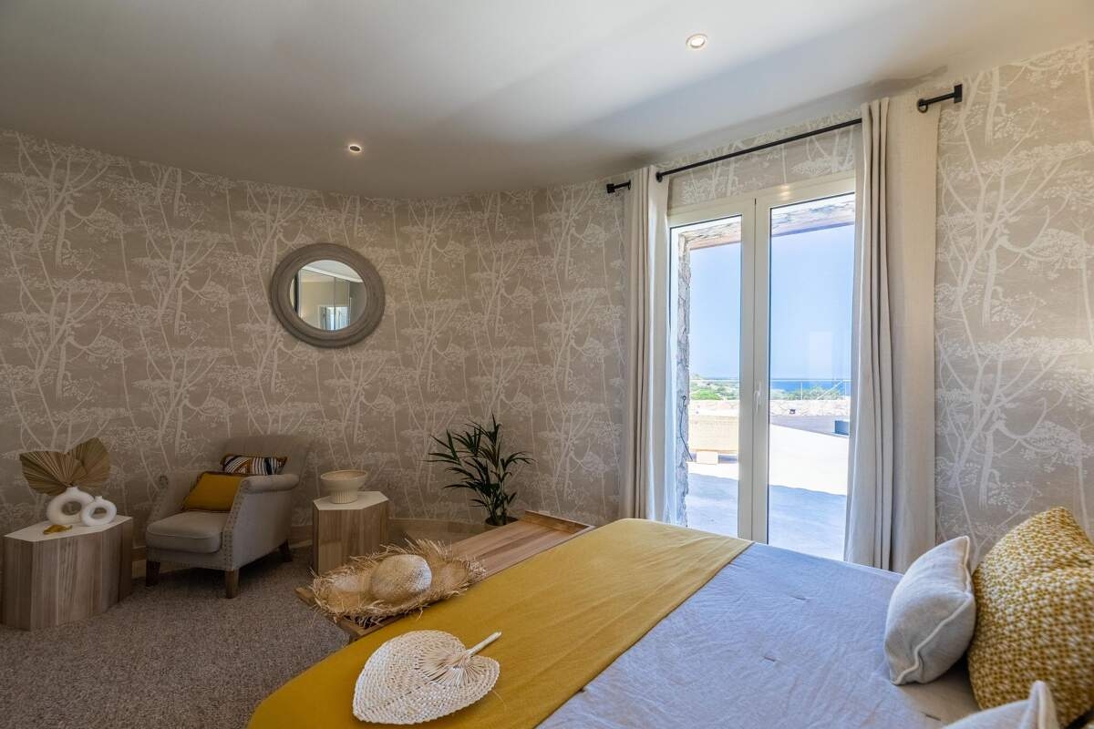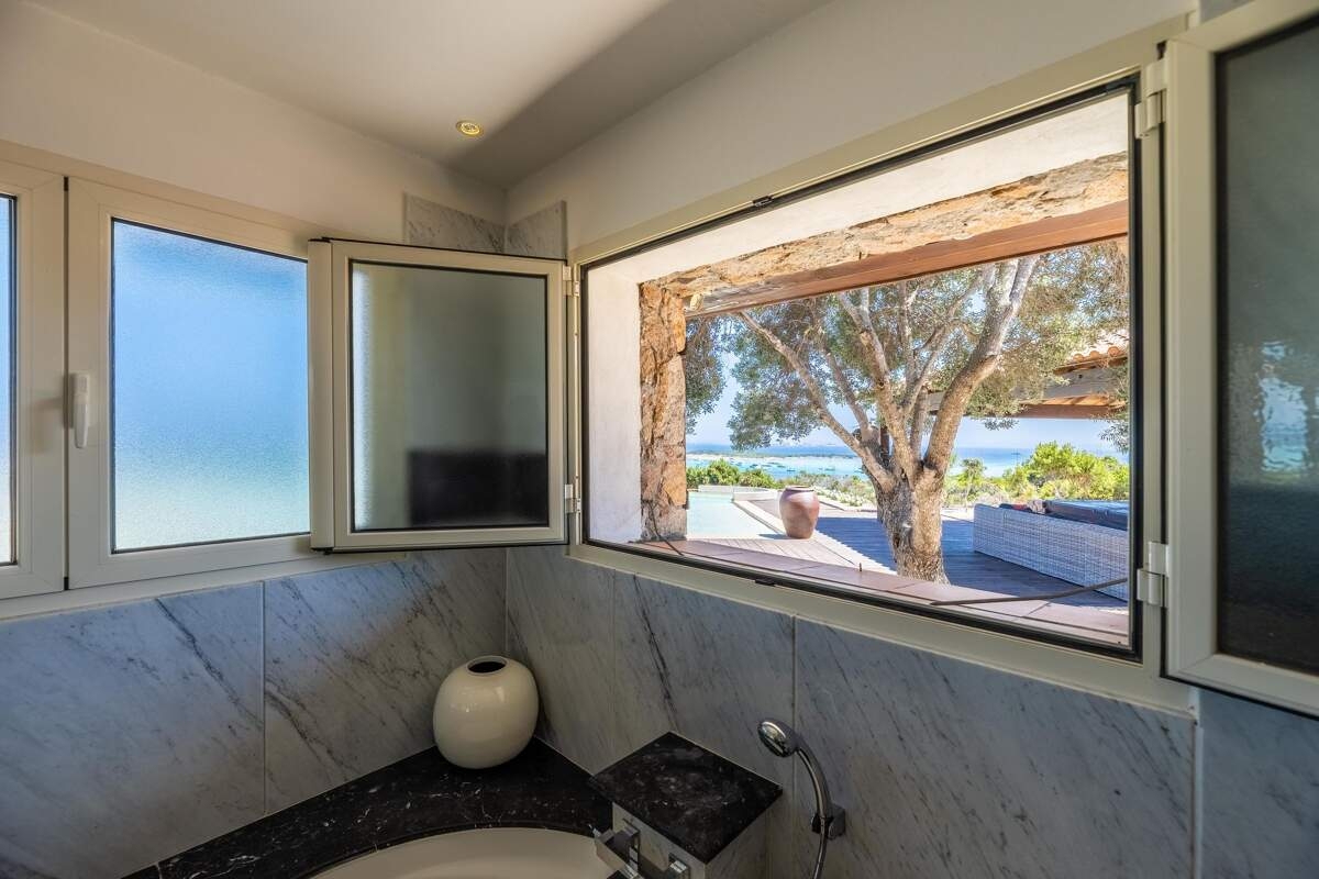 Located in Piantarella, just a few minutes from Bonifacio, Casa Marina offers breathtaking sea views in an idyllic setting. Large windows let the light in, while the infinite horizon and the contrast between the crystal-clear sea, the white rocks and the wild maquis create a soothing, refined atmosphere.
