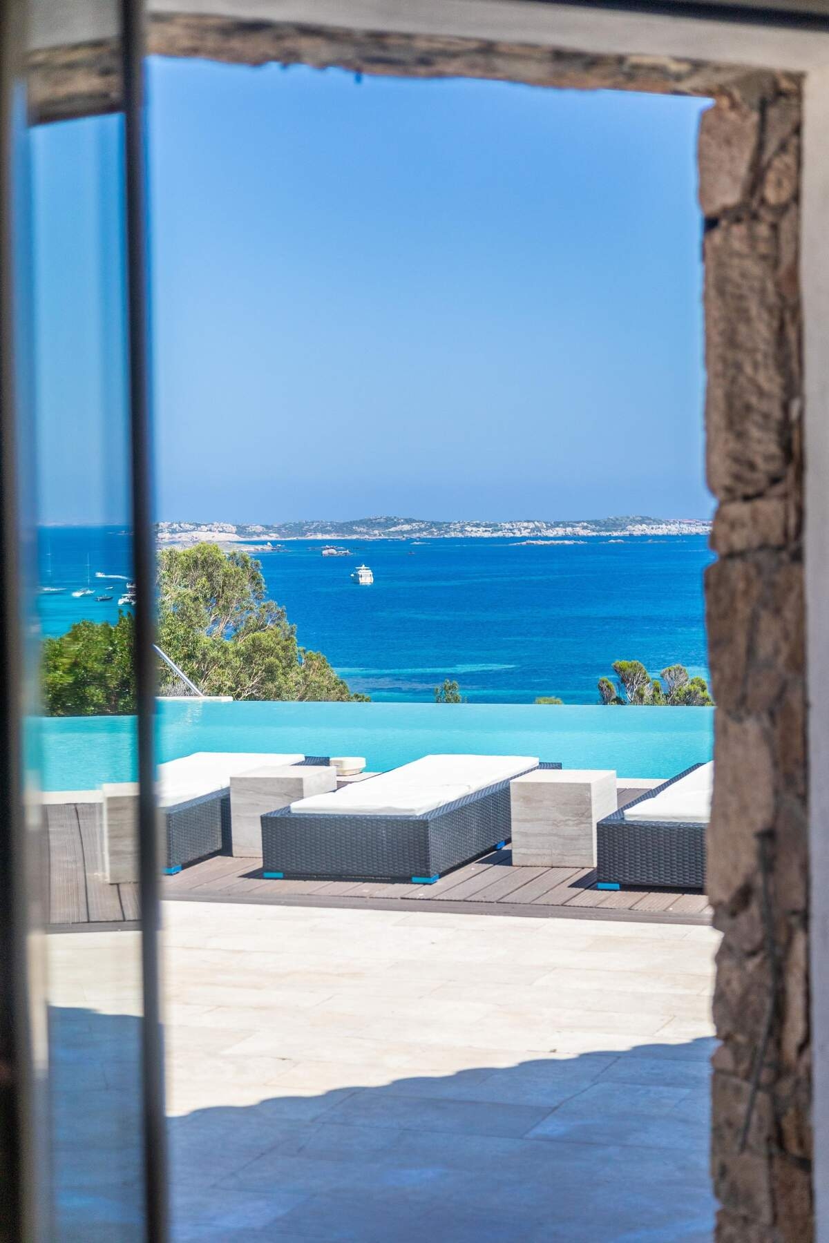 Wake up with a cup of coffee on the terrace, your eyes plunged into the sea. After a swim in the infinity pool, enjoy a game of billiards or a private screening in the cosy cinema room. The afternoon is spent between lunch in the shade of the umbrella pines and a few swings on the Spérone golf course, just a few minutes away. When the sun goes down, relax with a cocktail on the terrace.