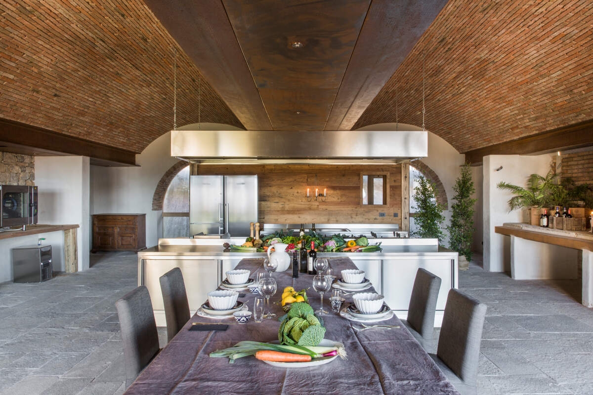 Cet ancien couvent de religieuses, vieux de plus de 1 000 ans, a été rénové selon les techniques traditionnelles du Moyen Âge et a retrouvé toute sa splendeur d'antan. Il est adossé à une ferme qui produit aujourd'hui plus de 60 000 bouteilles de vins blancs, rosés et rouges par an, 10 000 litres d'huile d'olive extra vierge, avec des potagers et des vergers à perte de vue. Castello Romano est l'endroit idéal pour se déconnecter et profiter de cette magnifique région aux parfums de truffe et aux immenses vignobles. Inutile de vous rendre au village pour faire la fête, car ce véritable château dispose déjà de tout ce dont vous avez besoin pour passer un séjour exceptionnel, de la salle de jeux et du cinéma à la salle de sport et à la plus longue piscine d'Italie.