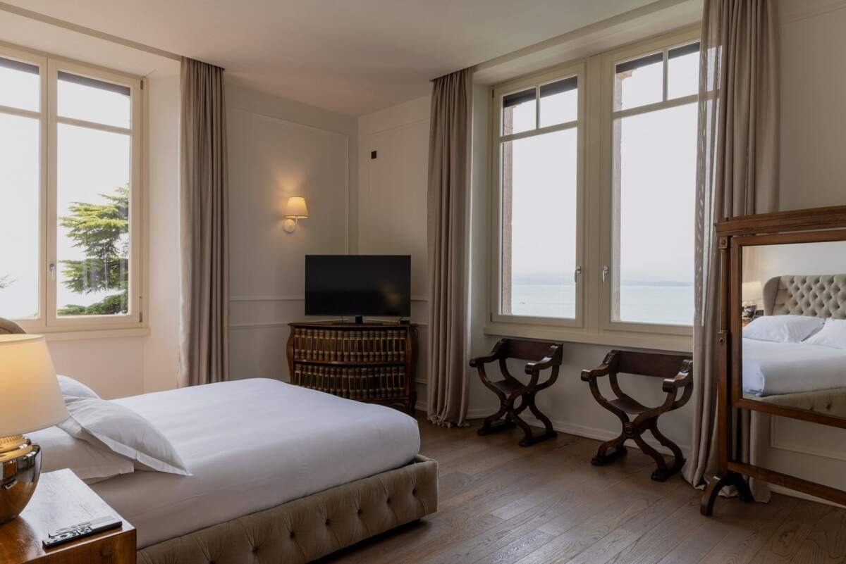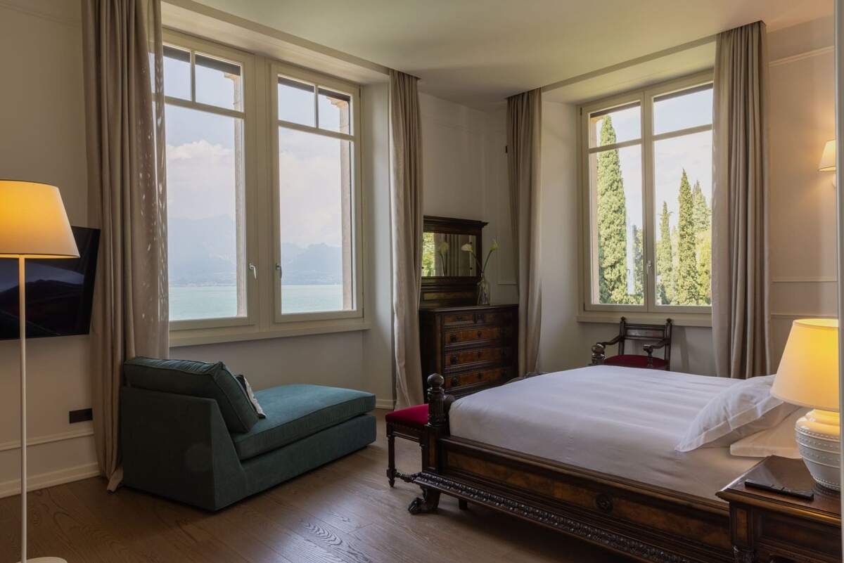 D'une superficie de 1 450 m², cette vaste résidence peut accueillir 16 personnes dans 8 chambres et 7 salles de bains. Les intérieurs raffinés de la villa s'ouvrent sur de larges terrasses et des pelouses soigneusement entretenues qui descendent doucement vers le lac, où un quai privé invite à l'aventure sur l'eau. Avec ses piscines intérieure et extérieure, ses espaces de vie généreux et ses vues à perte de vue, la Villa Anticello est un sanctuaire où se réunir et se détendre dans le plus pur style italien. Pourquoi on l'aime : • Cave à vin : profitez de dégustations privées de grands crus dans un style authentique • Paddleboards disponibles : explorez les eaux du lac de Garde d'une manière unique • Espace bien-être : piscine intérieure, sauna et hammam pour des moments de détente • Espaces de divertissement : salle de cinéma et salle de billard avec piano pour des soirées conviviales
