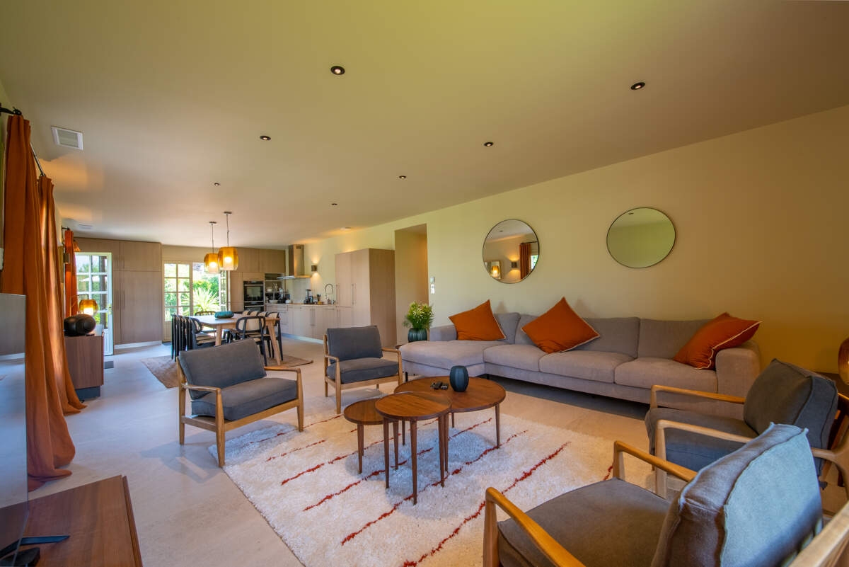 Villa de la Vigne is a picturesque oasis in Ramatuelle. Its idyllic exterior creates the perfect seaside ambience and its comfortable interior is ideal for relaxing. The lush vegetation surrounding the house offers total privacy for your getaway.