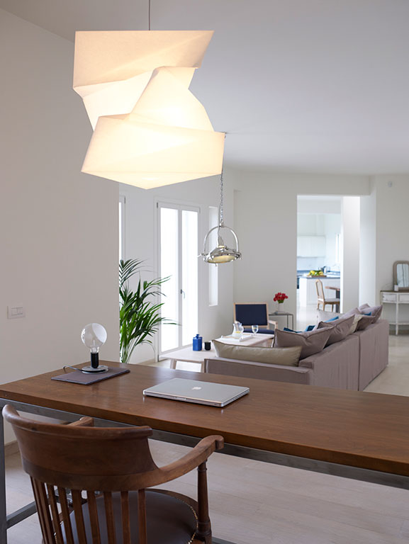 – Séjour ouvert avec cheminée, bureau et petite terrasse privée.