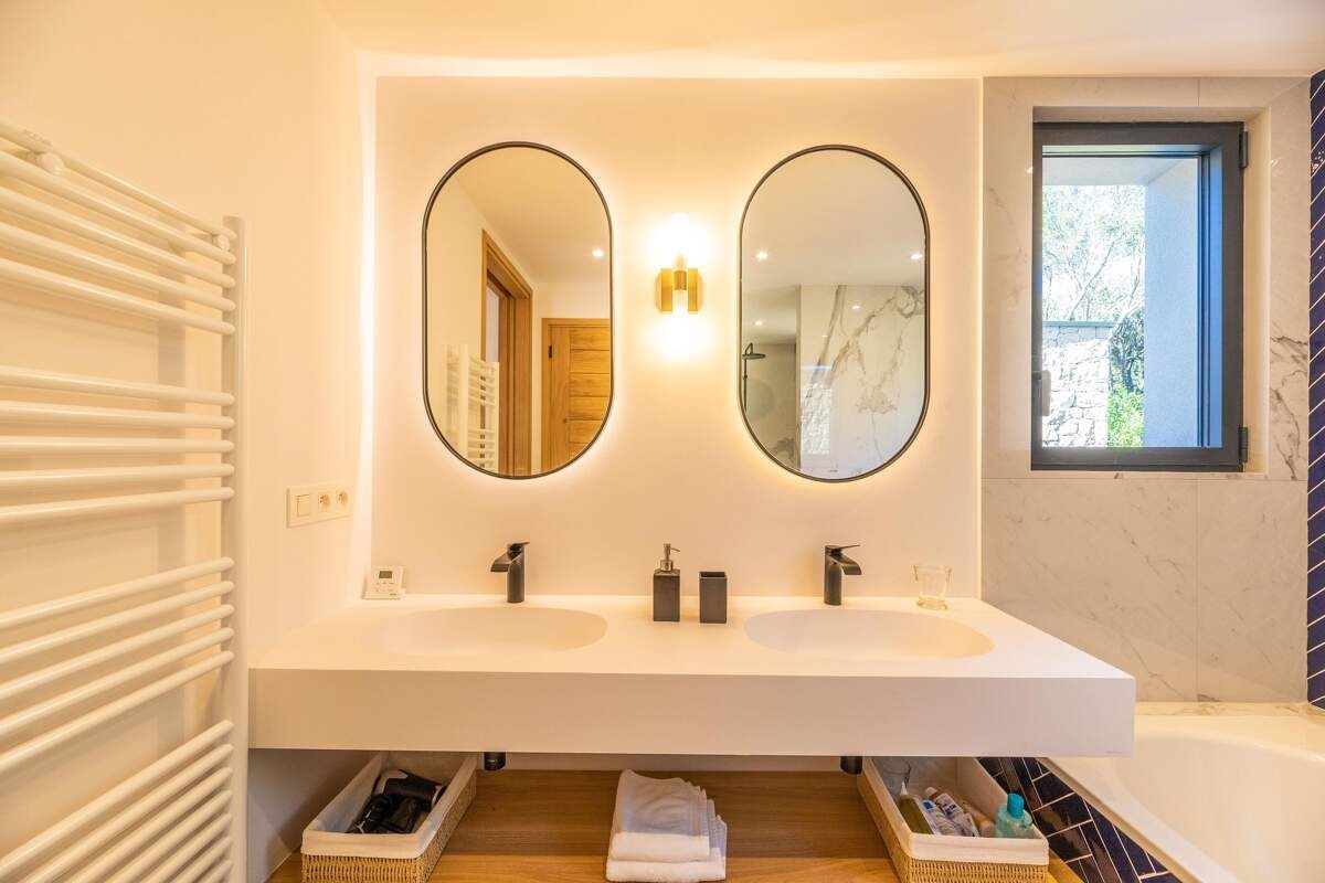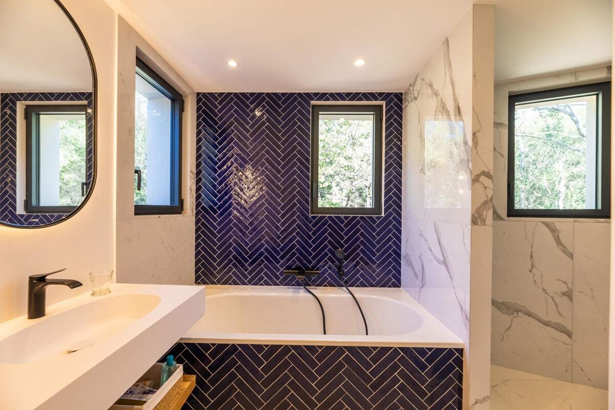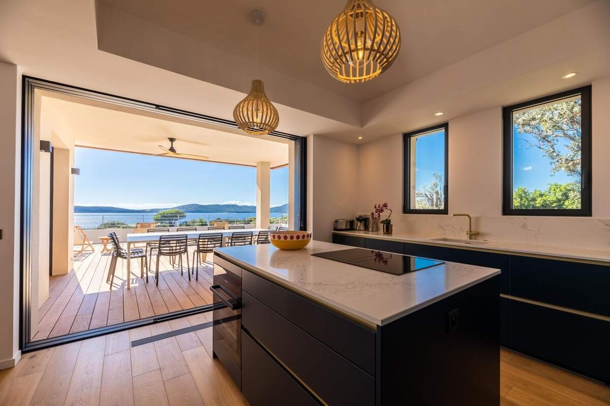 Nestling in the heart of the Cala Rossa estate, Villa Enrosadira offers an exceptional haven of peace by the sea. Its elegant architecture blends harmoniously with the surrounding landscape, while its large windows let the soft morning light flood into the rooms.