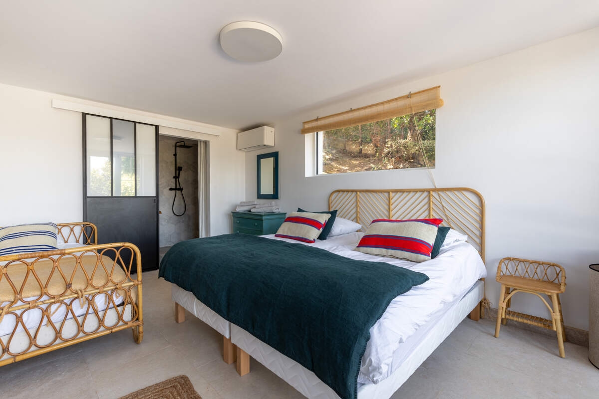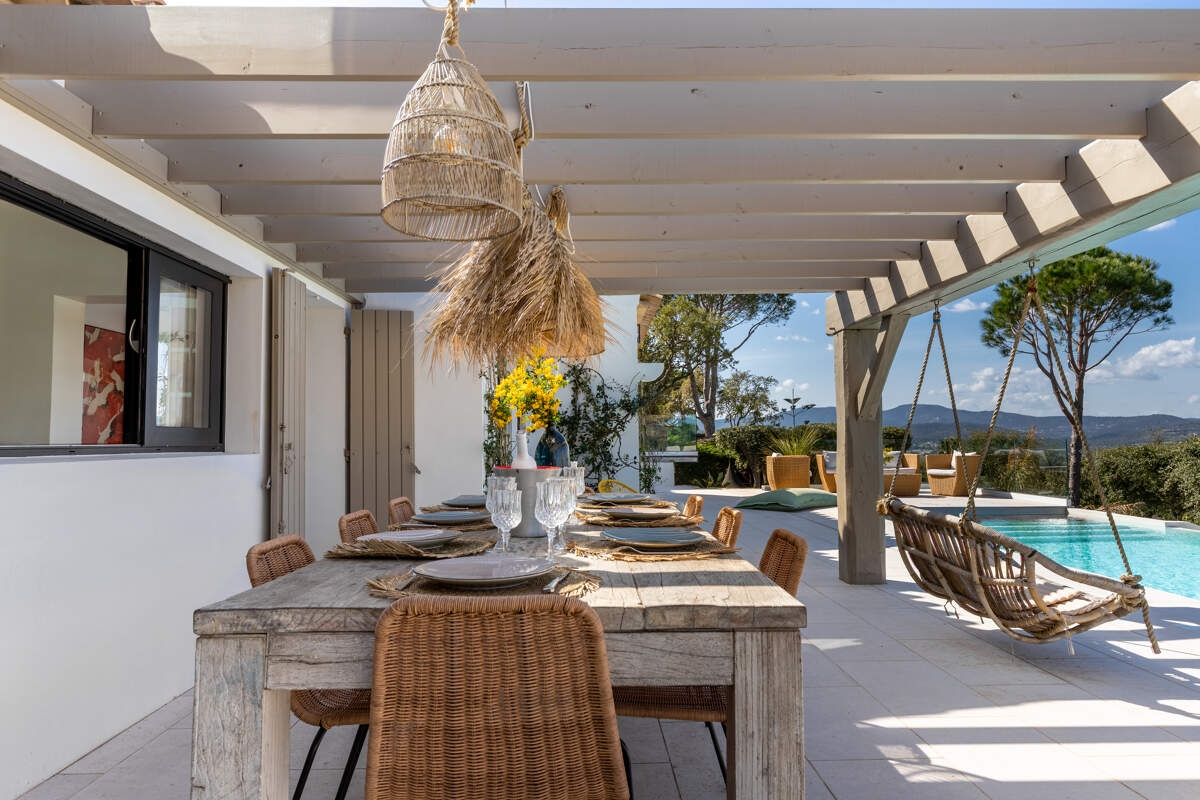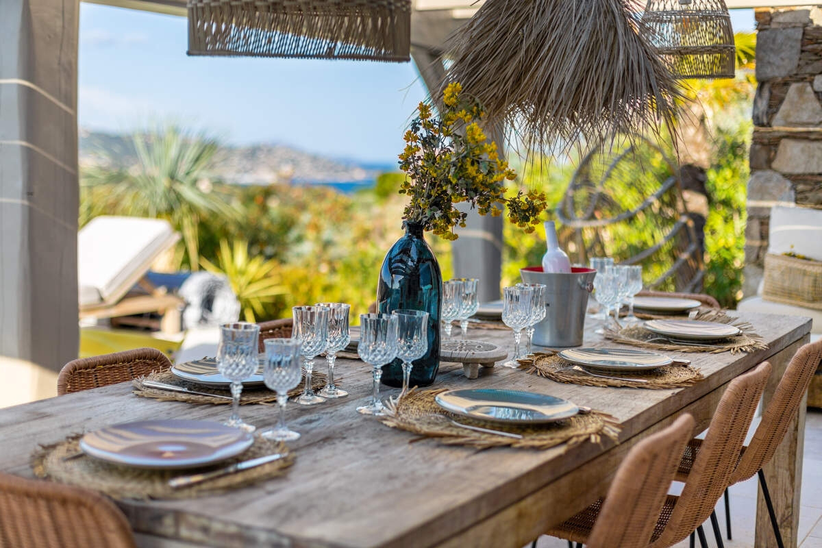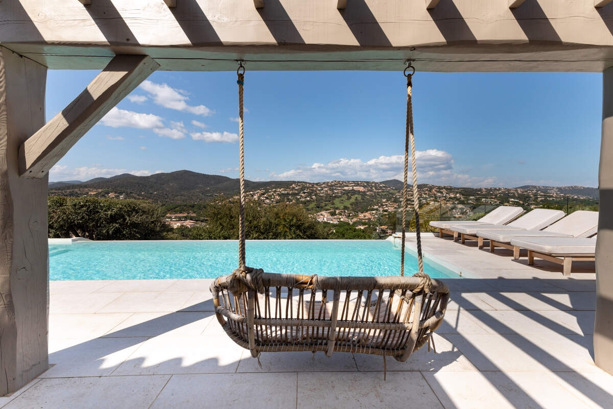 Perched on the hills of Sainte-Maxime, Villa Evissa offers breathtaking sea views. A lush tropical garden surrounds the villa, providing an intimate and peaceful retreat. The day begins gently with a peaceful morning before setting off on an electric bike ride through the surrounding landscape. While the teenagers settle into their private space, the day unfolds between refreshing dips in the infinity pool and games of tennis in the sunshine. In the afternoon, the barbecue crackles, petanque is in full swing and relaxing on the sun loungers is perfectly complemented by the breathtaking views.