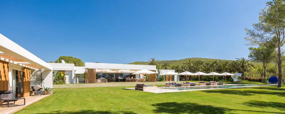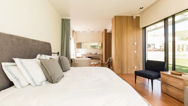 L'iconique Villa Fusion impose son aura à seulement cinq minutes de la plage et à 20 minutes du centre d'Ibiza, tout en restant cachée par la verdure luxuriante des Baléares. Dégageant un charme irrésistible grâce à son élégance minimaliste, entre tons neutres et matériaux organiques, elle est la parfaite incarnation du luxe discret de l'Île Blanche.