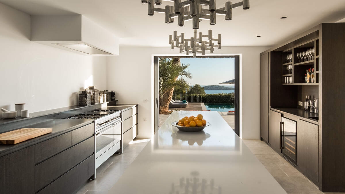 La maison principale dispose d'une cuisine moderne entièrement équipée avec tous les appareils électroménagers modernes, ainsi que d'une cuisine industrielle supplémentaire pour les chefs privés. Cette maison moderne impeccablement entretenue est privée, spacieuse et entourée de jardins et de pelouses luxuriants et soigneusement entretenus. Profitez d'une vue imprenable sur la mer depuis le confort et le luxe de l'une des terrasses, ou détendez-vous dans l'un des nombreux espaces de détente exclusifs situés à côté de la piscine spectaculaire. Vous y trouverez également un magnifique et spacieux coin repas extérieur et un court de tennis privé. Le bar sur mesure est l'endroit idéal pour recevoir vos invités avec des cocktails avant la fête.