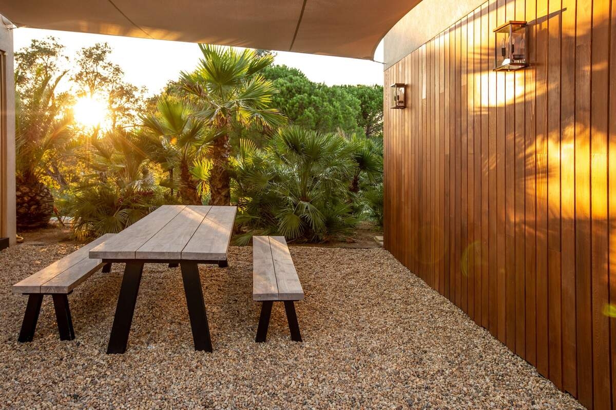 La journée commence par une séance de yoga sur la terrasse ou quelques mouvements d'aquabike dans la piscine chauffée. Le déjeuner rassemble la famille autour de la plancha avant de laisser place à un après-midi de farniente dans le salon extérieur ou à des promenades paisibles dans le jardin.
