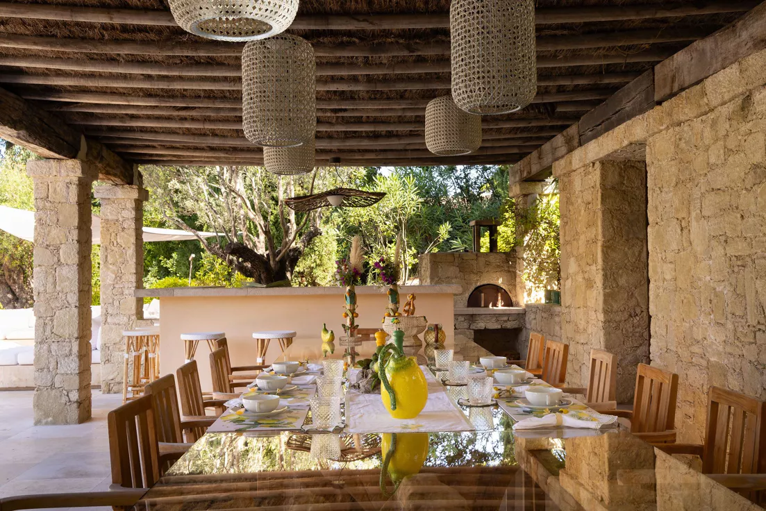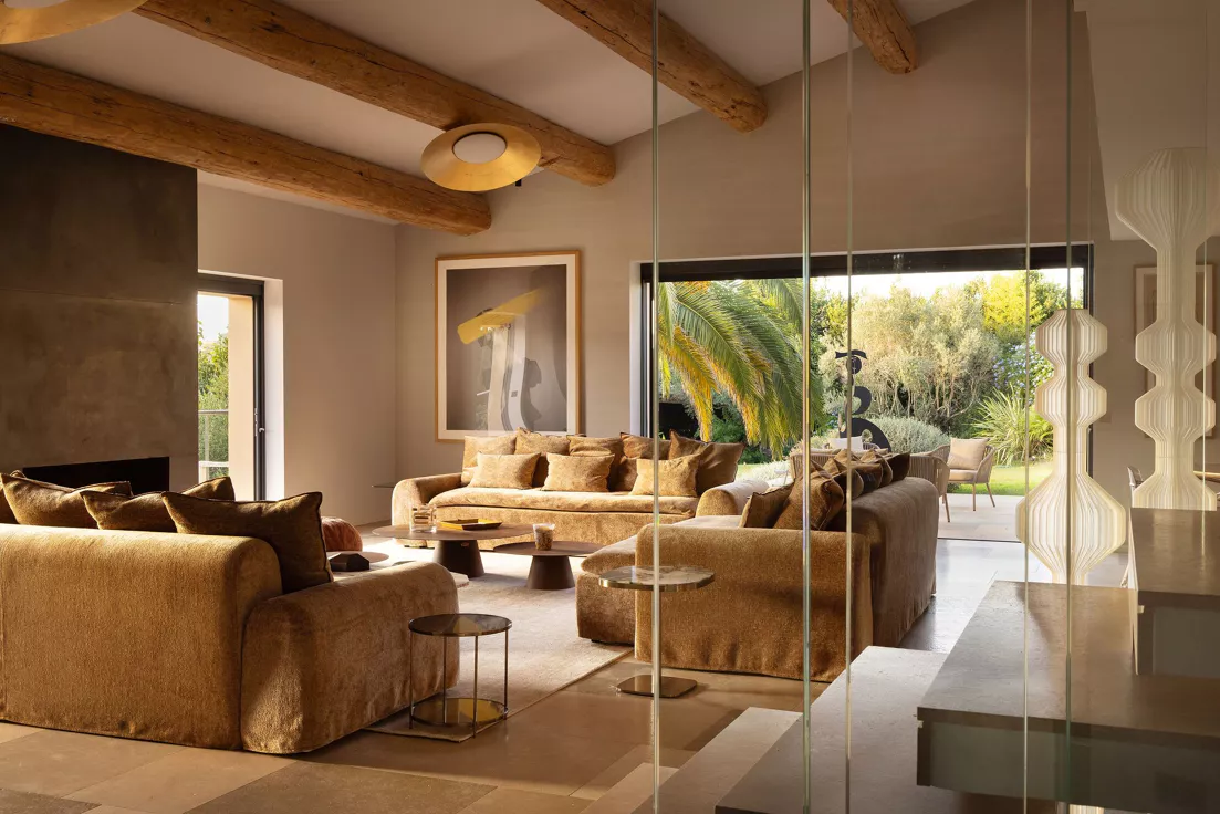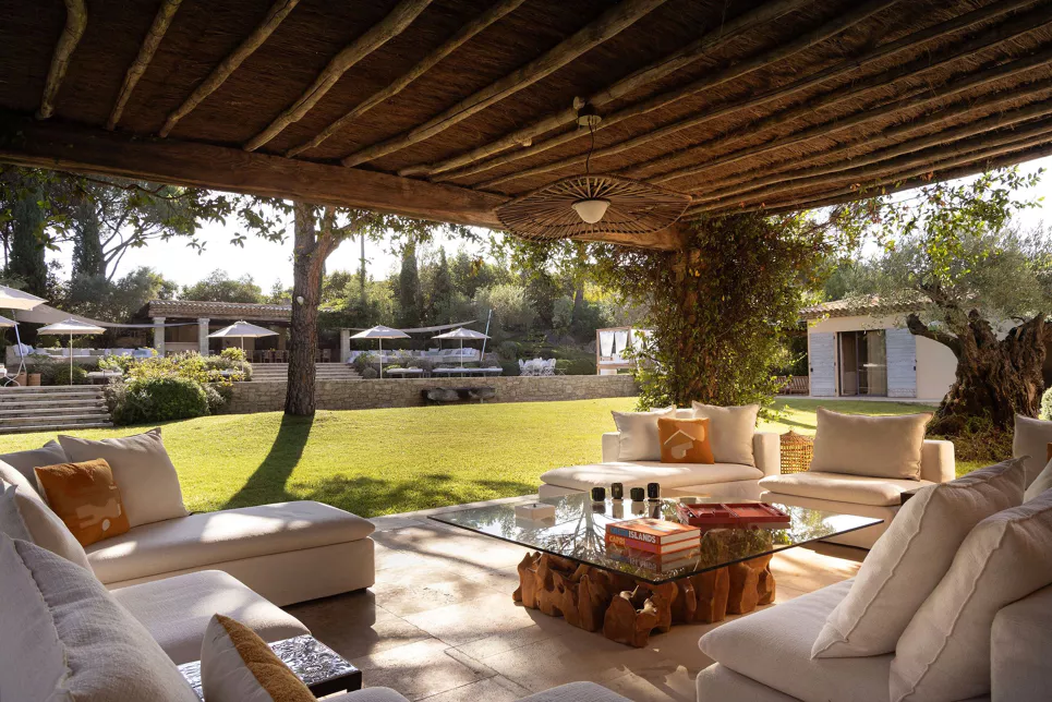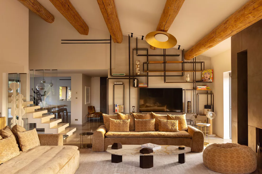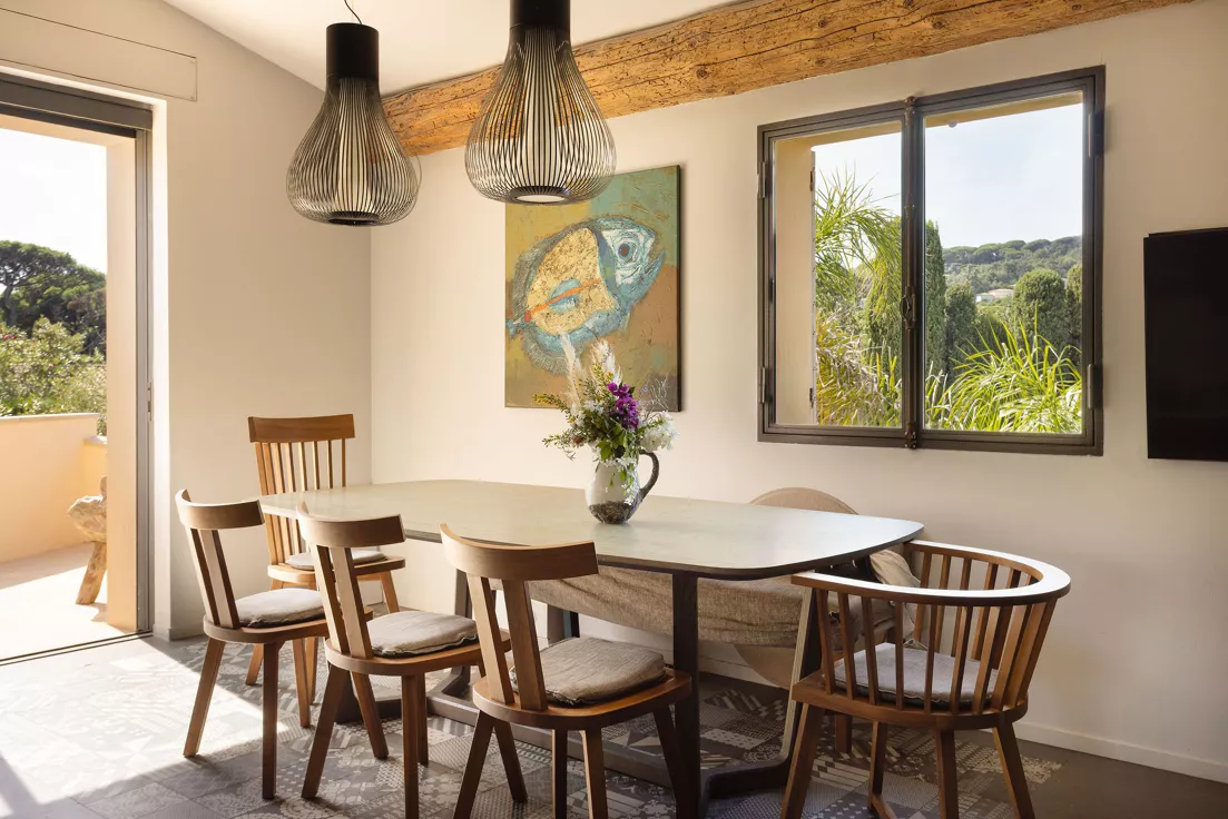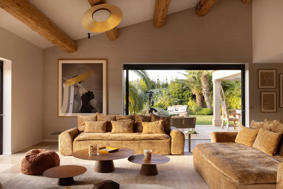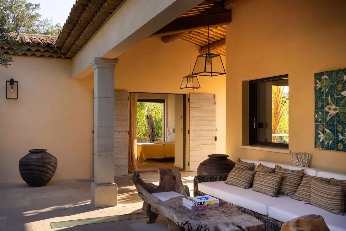 Located on the Saint-Tropez peninsula, Villa Maï Taï is a sprawling farmhouse where traditional Provençal charm meets bold avant-garde accents and vibrant pop art touches. The interiors combine rustic elegance with a contemporary touch, creating a unique atmosphere.