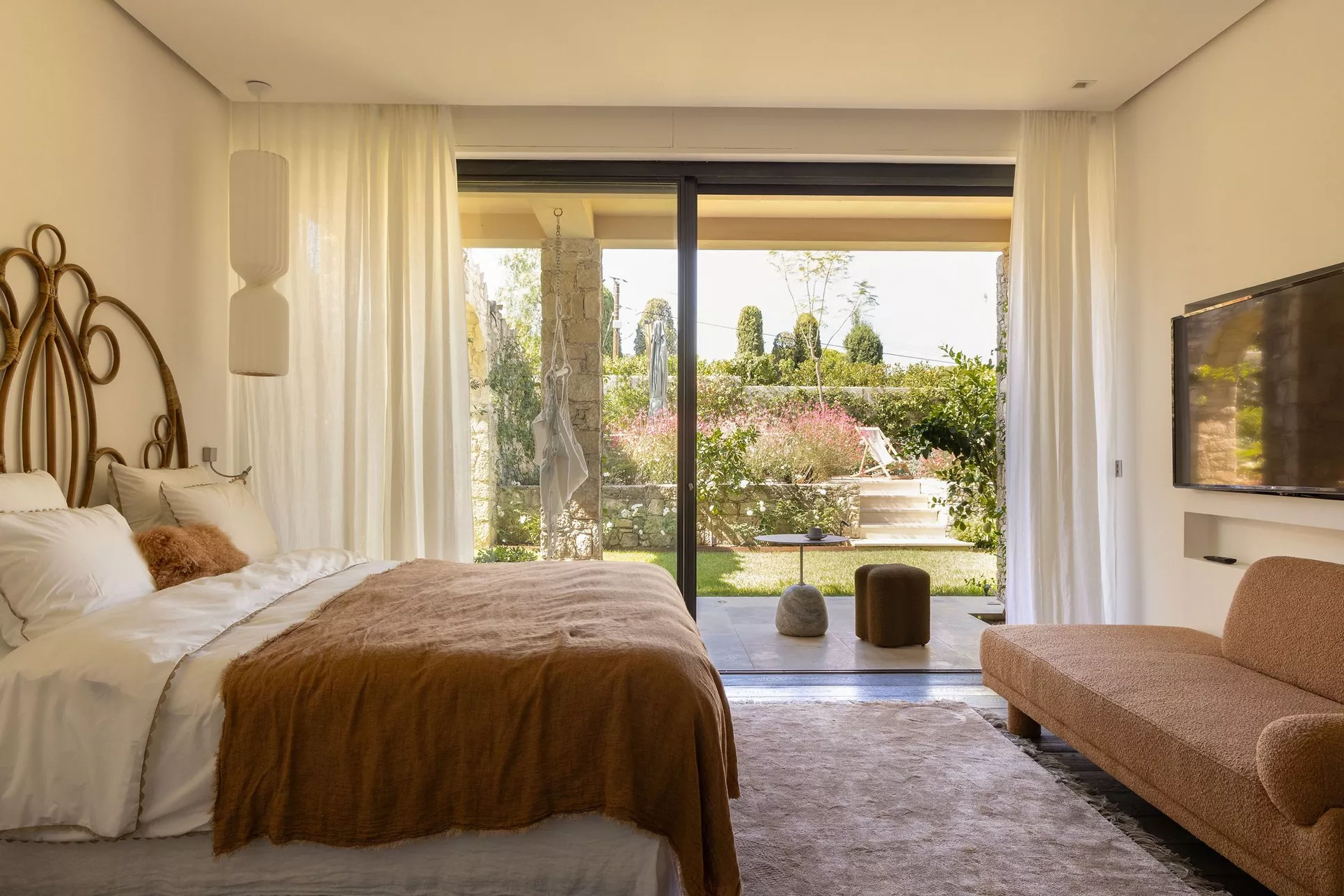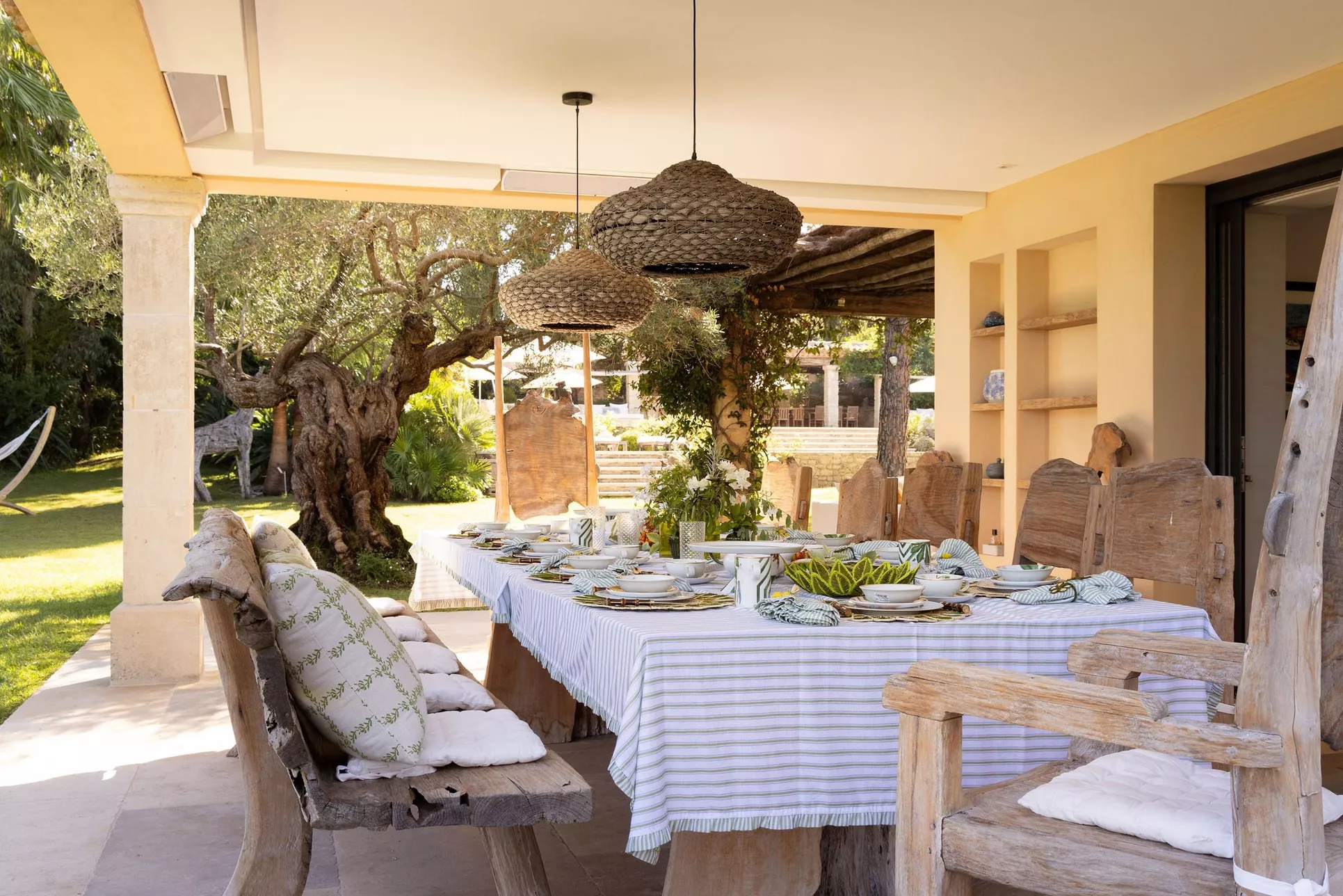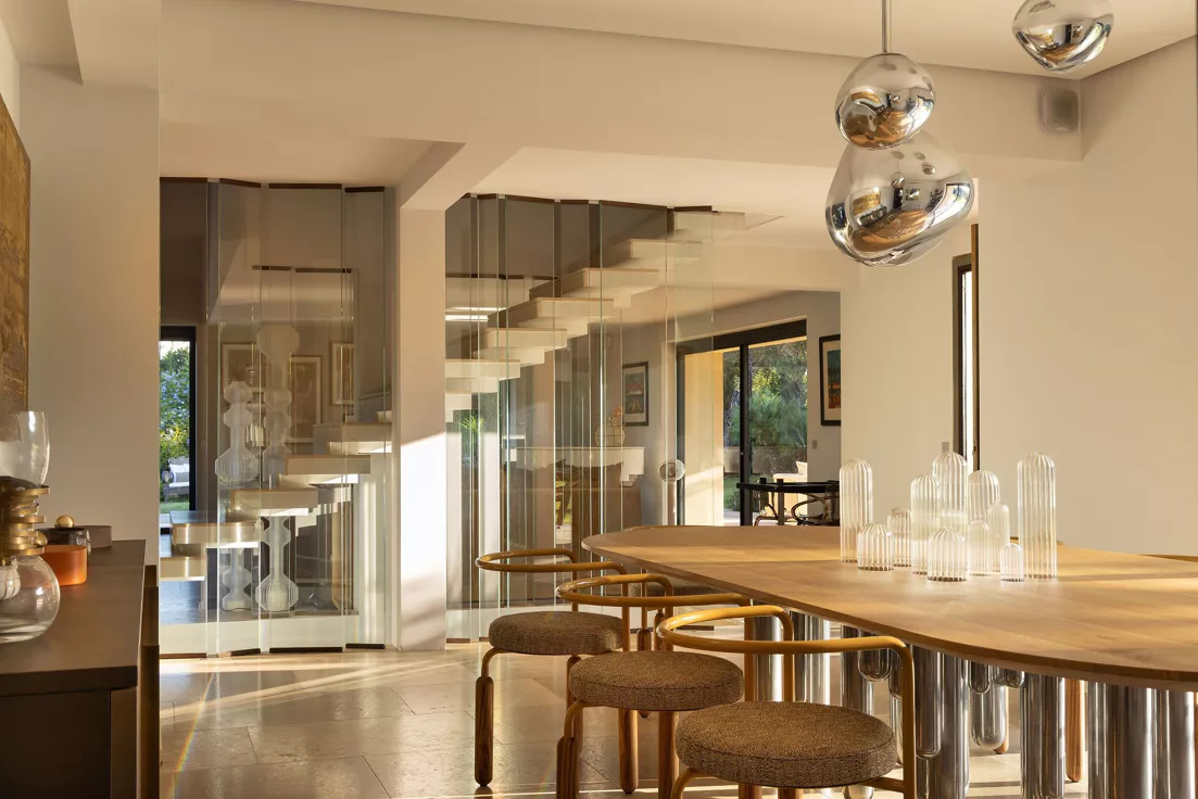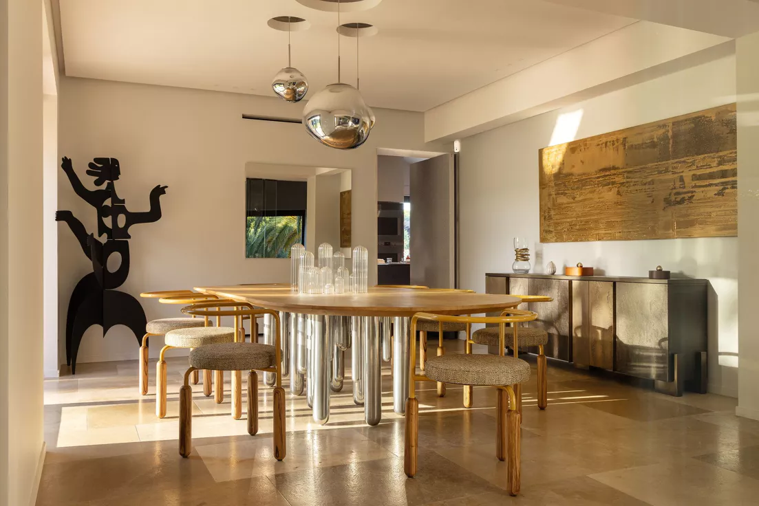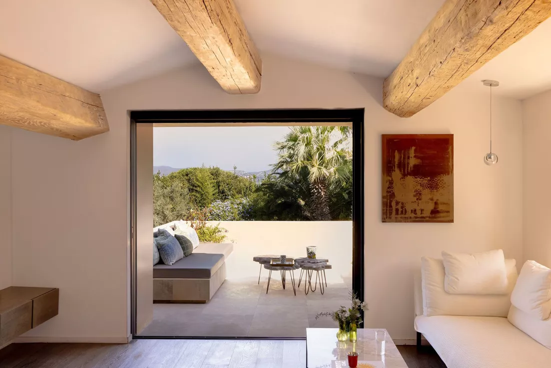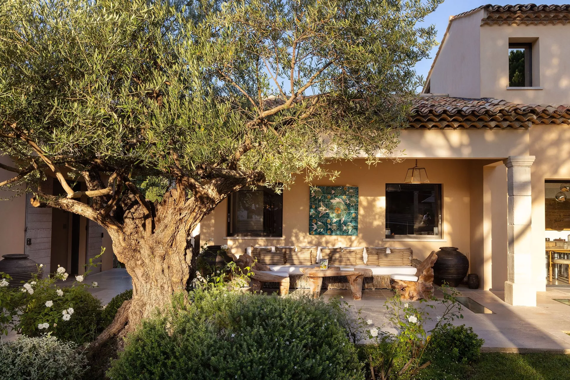 Located on the Saint-Tropez peninsula, Villa Maï Taï is a sprawling farmhouse where traditional Provençal charm meets bold avant-garde accents and vibrant pop art touches. The interiors combine rustic elegance with a contemporary touch, creating a unique atmosphere.
