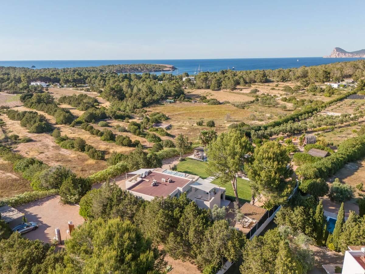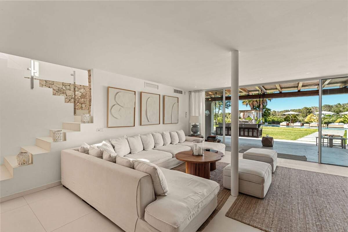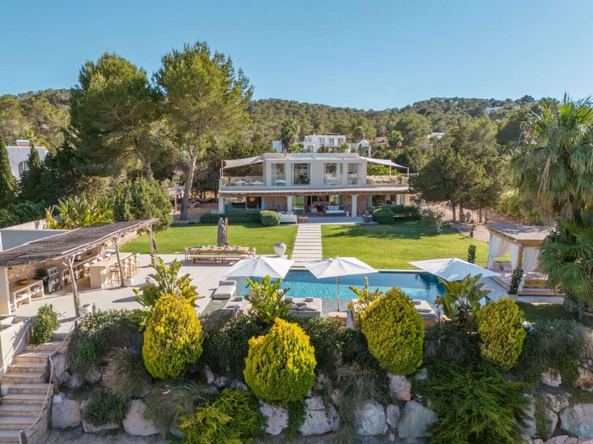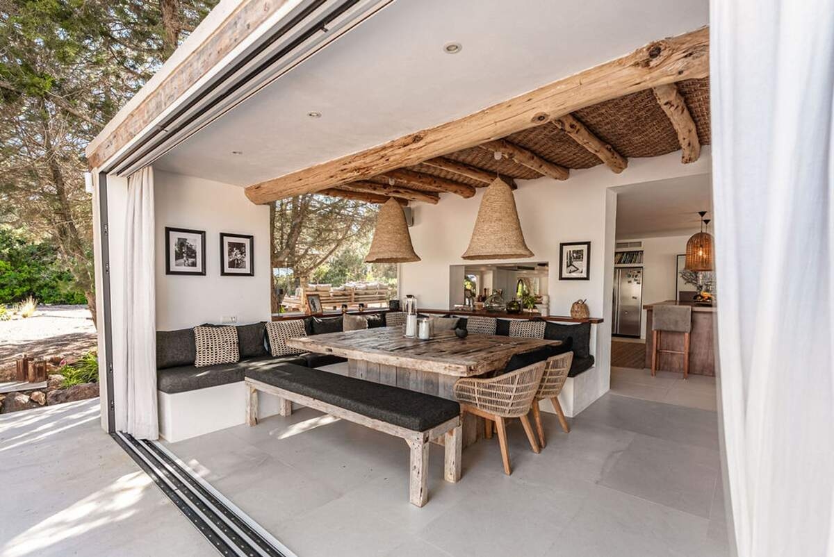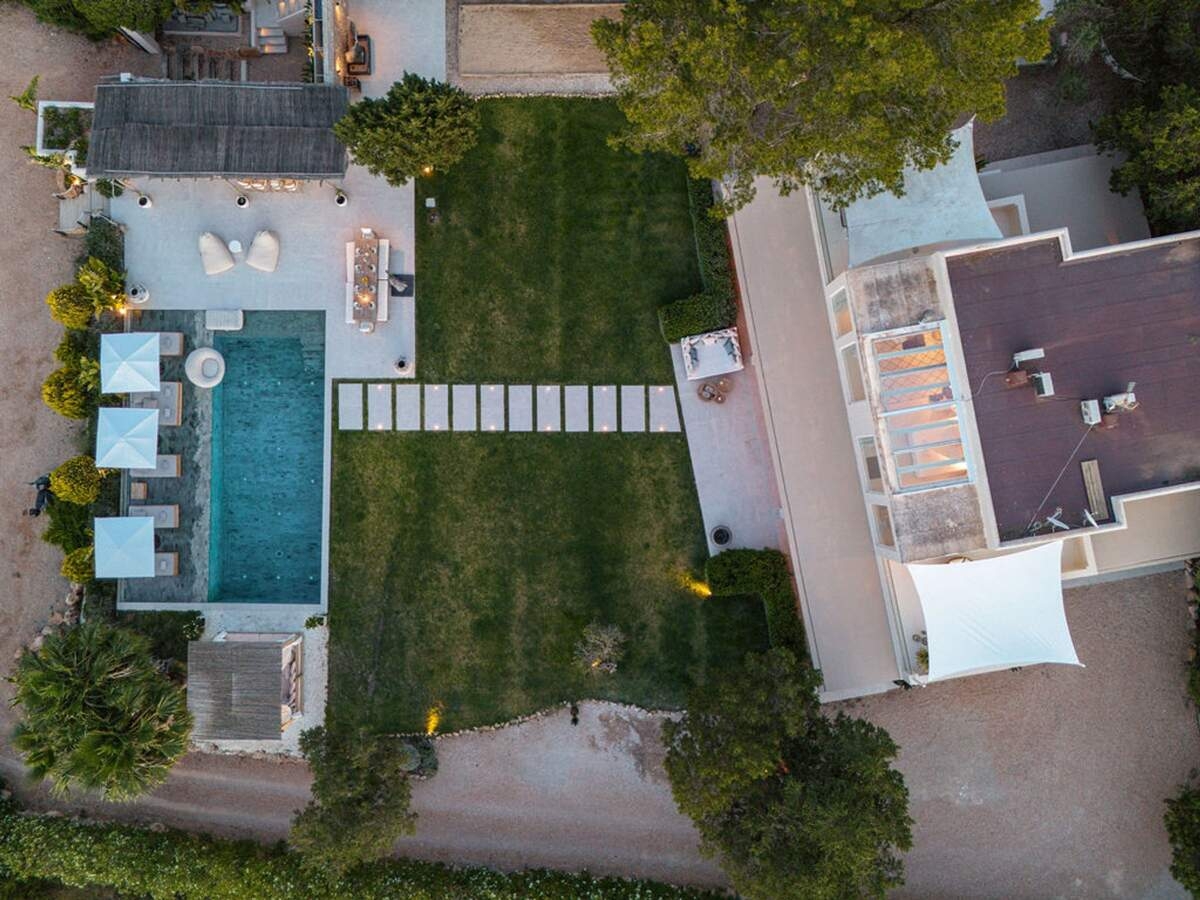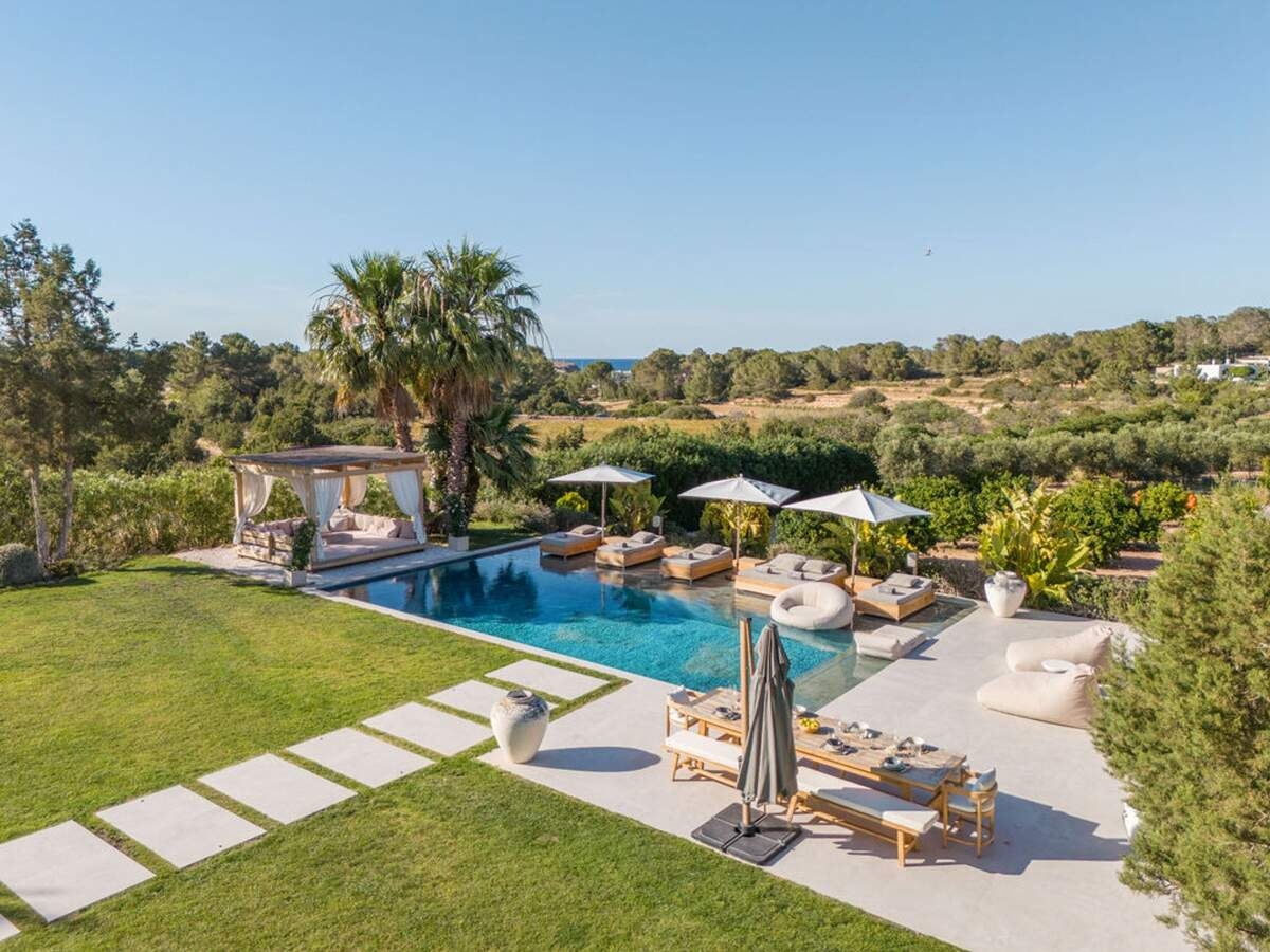 À l'extérieur, le jardin paysager de la villa devient un havre de loisirs et de nature. Suivez un charmant sentier bordé d'oliviers pour découvrir un potager tranquille, parfait pour ceux qui apprécient la vie biologique. Les amateurs de sport apprécieront le terrain de volley-ball privé, idéal pour des matchs amicaux sous le soleil. Commencez votre journée par une baignade dans la piscine, puis détendez-vous sur la grande terrasse ensoleillée ou savourez un repas en plein air dans la salle à manger ombragée, préparé dans la cuisine extérieure entièrement équipée. Au coucher du soleil, retrouvez-vous dans les élégants espaces de vie ou partez à la découverte de la vie nocturne animée d'Ibiza, sachant que votre havre de paix n'est qu'à quelques minutes en voiture.
