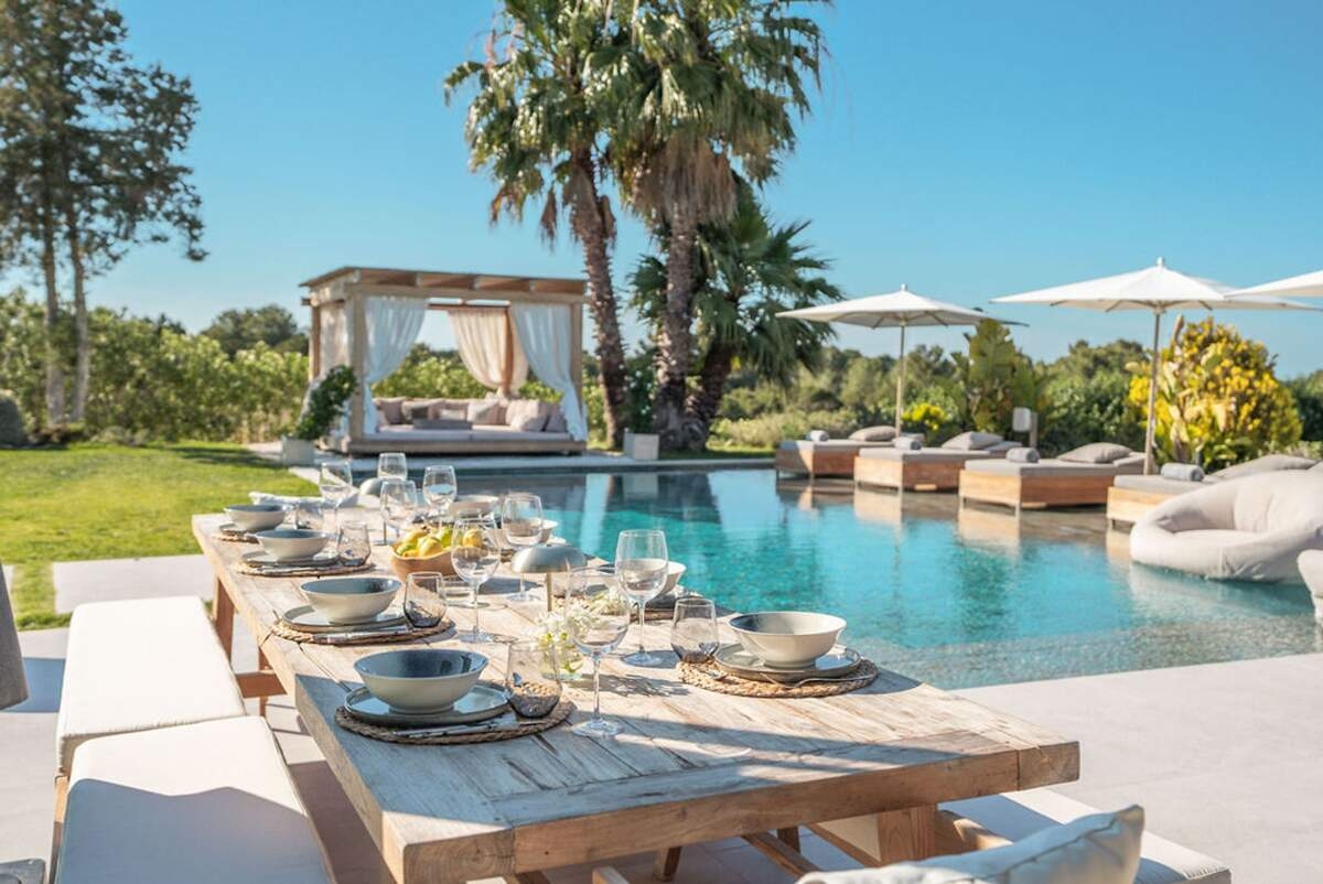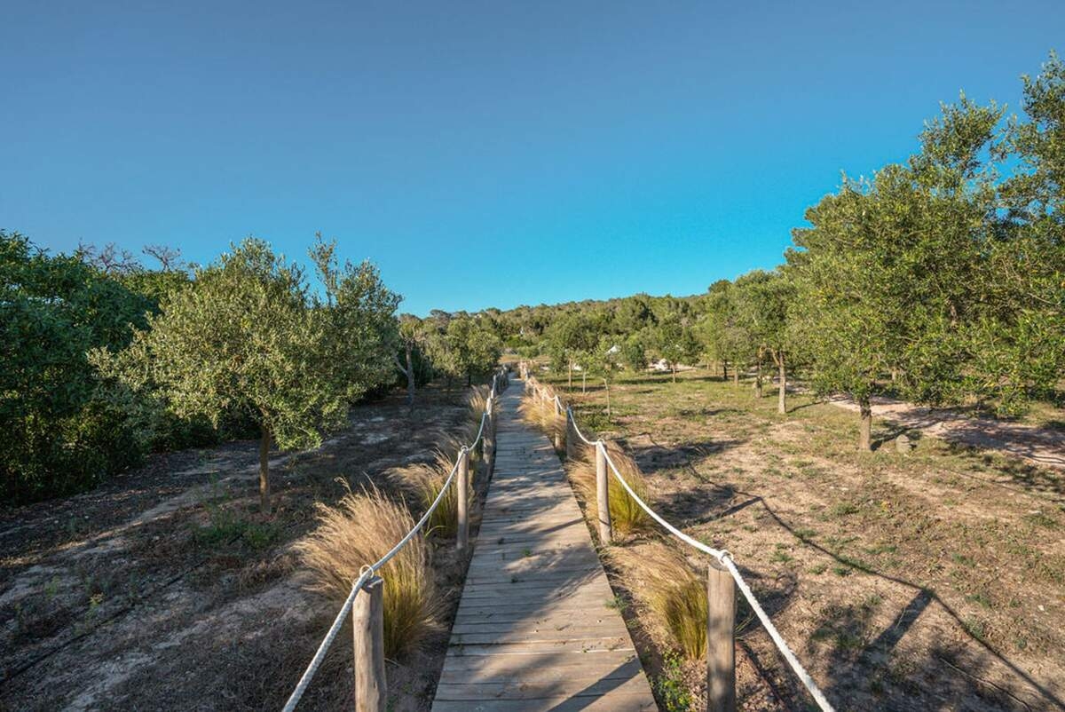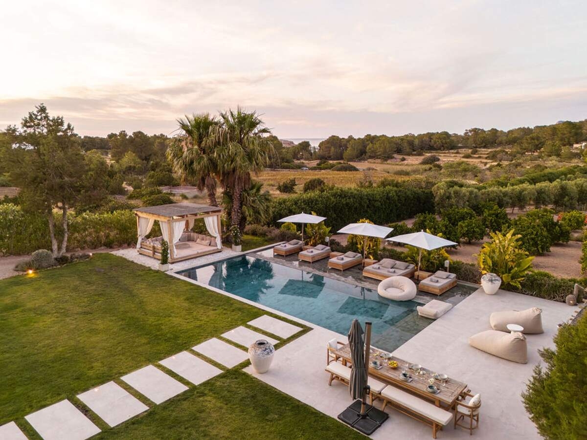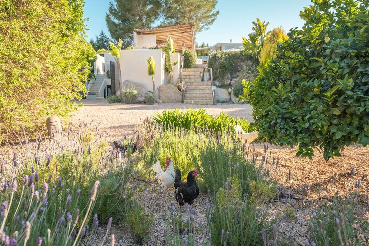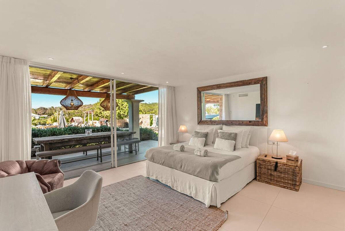 À l'extérieur, le jardin paysager de la villa devient un havre de loisirs et de nature. Suivez un charmant sentier bordé d'oliviers pour découvrir un potager tranquille, parfait pour ceux qui apprécient la vie biologique. Les amateurs de sport apprécieront le terrain de volley-ball privé, idéal pour des matchs amicaux sous le soleil. Commencez votre journée par une baignade dans la piscine, puis détendez-vous sur la grande terrasse ensoleillée ou savourez un repas en plein air dans la salle à manger ombragée, préparé dans la cuisine extérieure entièrement équipée. Au coucher du soleil, retrouvez-vous dans les élégants espaces de vie ou partez à la découverte de la vie nocturne animée d'Ibiza, sachant que votre havre de paix n'est qu'à quelques minutes en voiture.