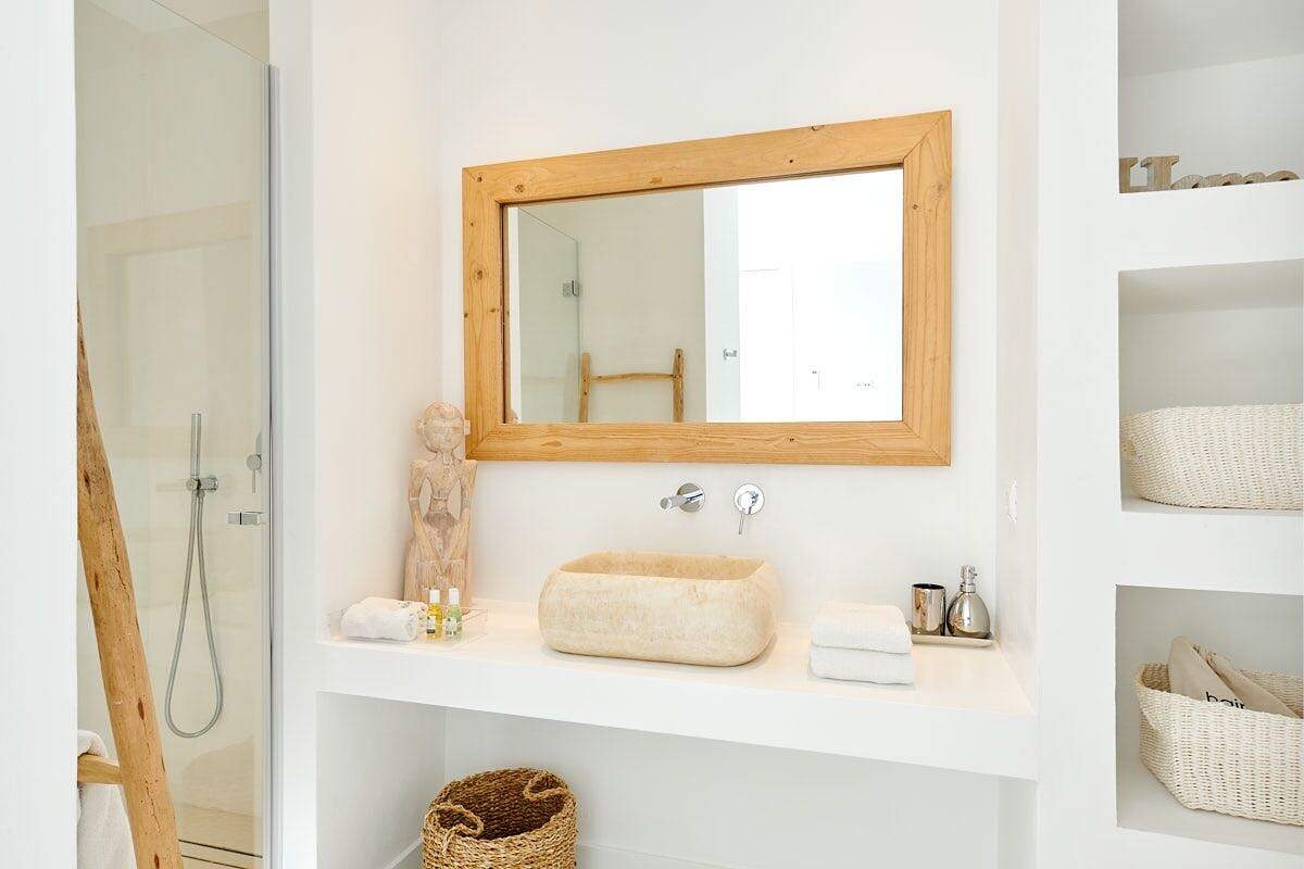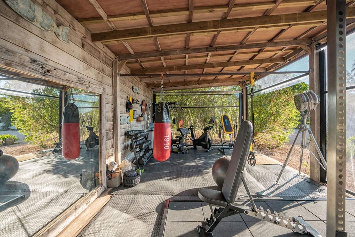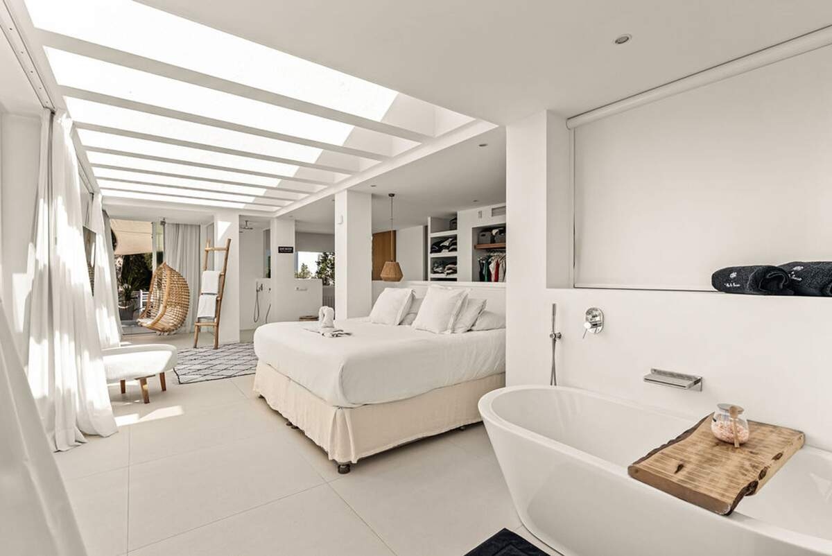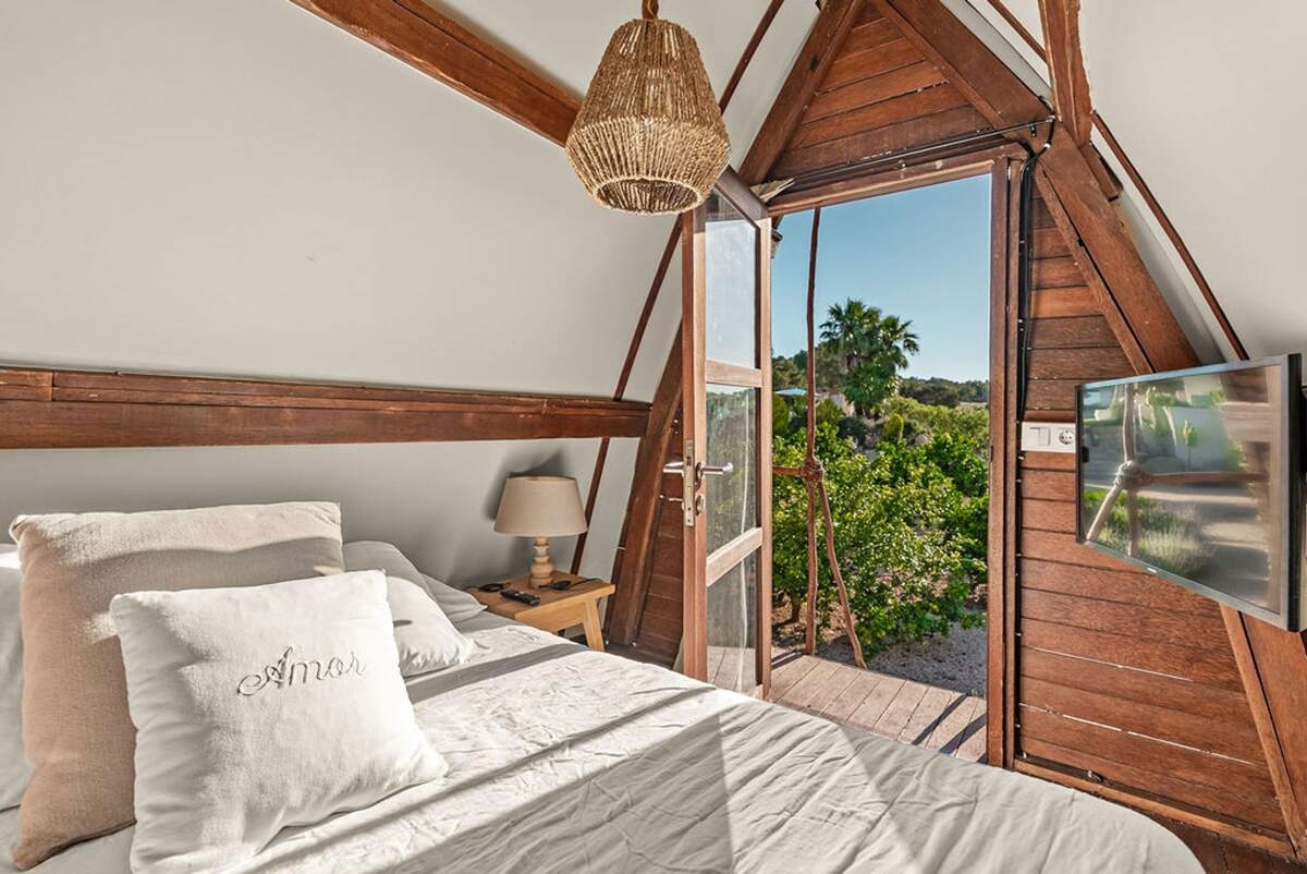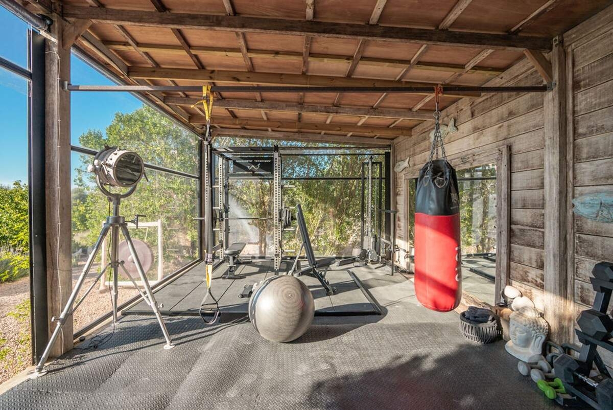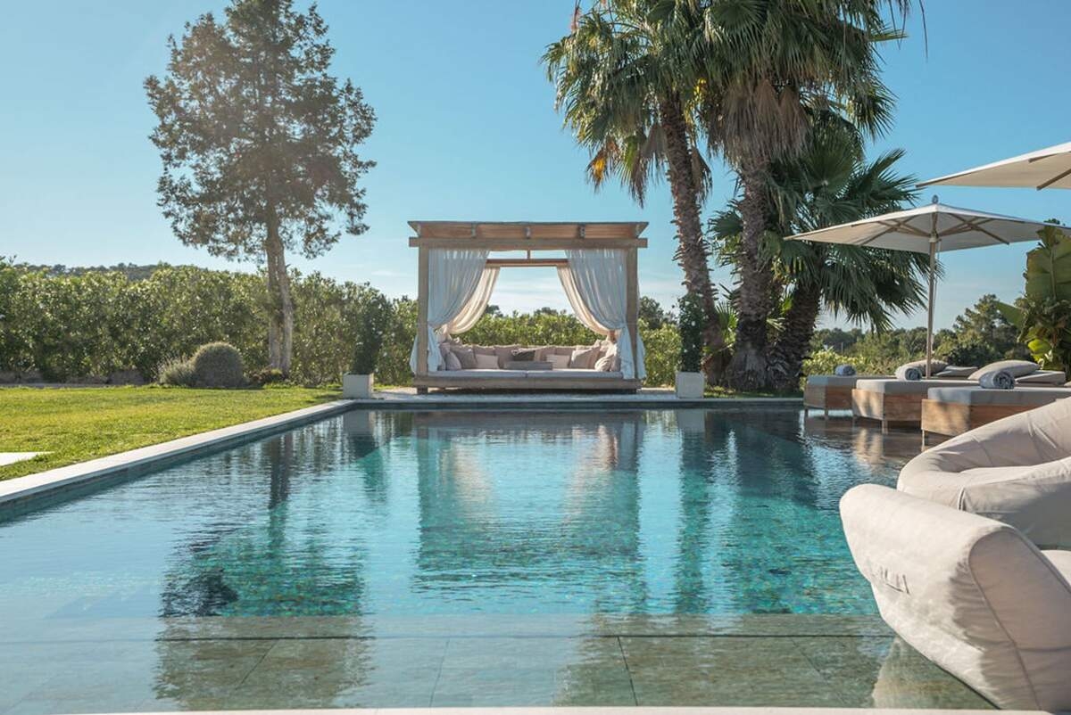 À l'extérieur, le jardin paysager de la villa devient un havre de loisirs et de nature. Suivez un charmant sentier bordé d'oliviers pour découvrir un potager tranquille, parfait pour ceux qui apprécient la vie biologique. Les amateurs de sport apprécieront le terrain de volley-ball privé, idéal pour des matchs amicaux sous le soleil. Commencez votre journée par une baignade dans la piscine, puis détendez-vous sur la grande terrasse ensoleillée ou savourez un repas en plein air dans la salle à manger ombragée, préparé dans la cuisine extérieure entièrement équipée. Au coucher du soleil, retrouvez-vous dans les élégants espaces de vie ou partez à la découverte de la vie nocturne animée d'Ibiza, sachant que votre havre de paix n'est qu'à quelques minutes en voiture.