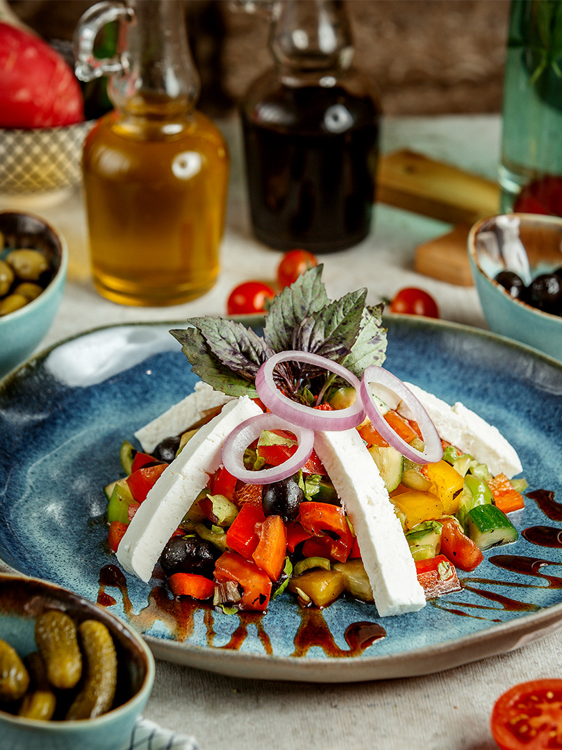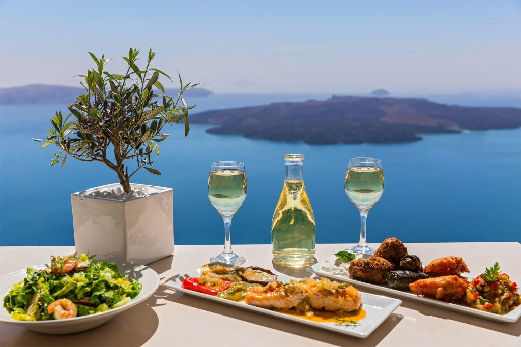 En été, le dîner débute rarement avant 20 h et peut se prolonger tard dans la nuit. Dans certaines tavernes, il est possible de sélectionner son poisson directement en cuisine. Le pain est servi automatiquement à table et facturé, qu’il soit consommé ou non ; il peut être demandé grillé et accompagné d’huile d’olive locale.